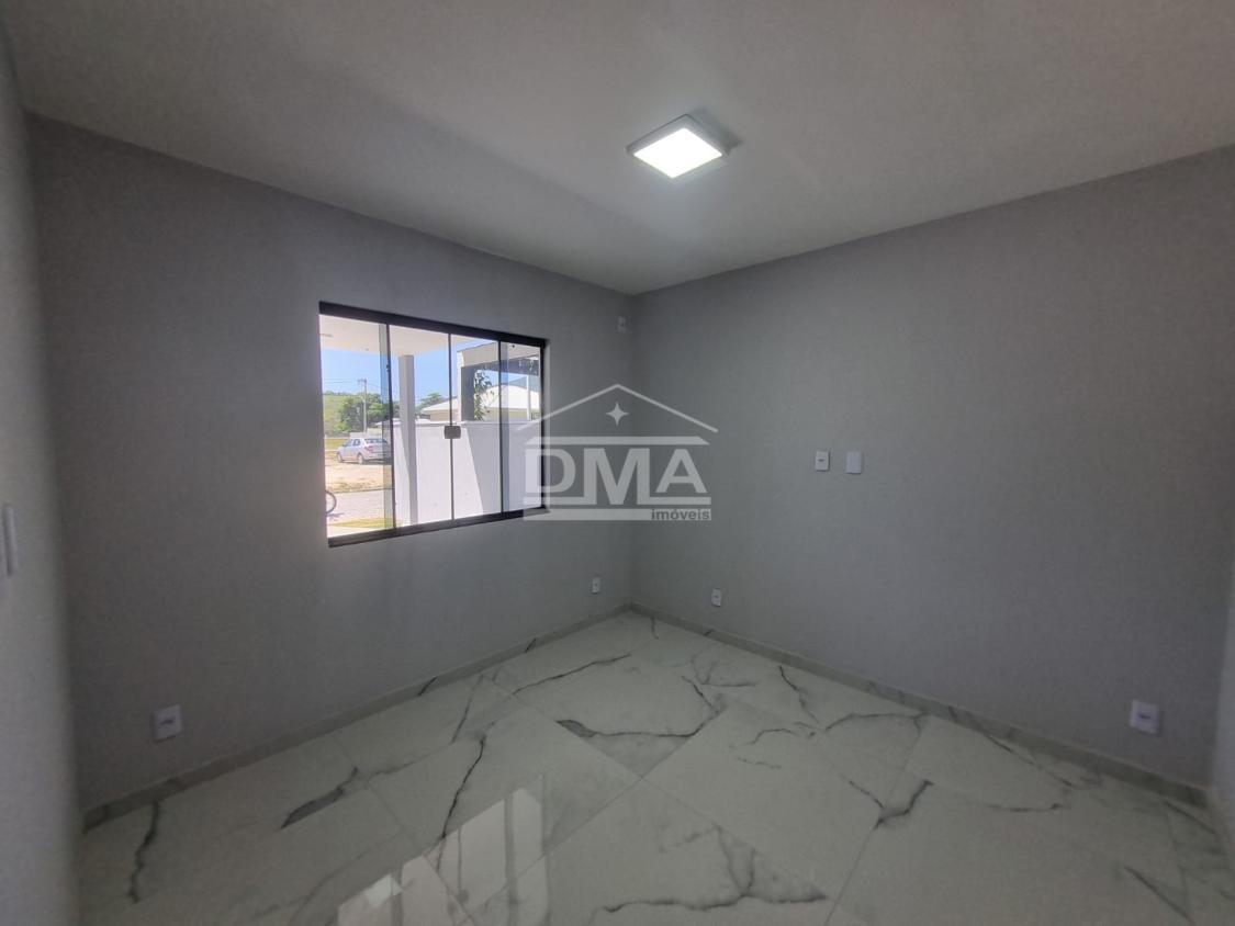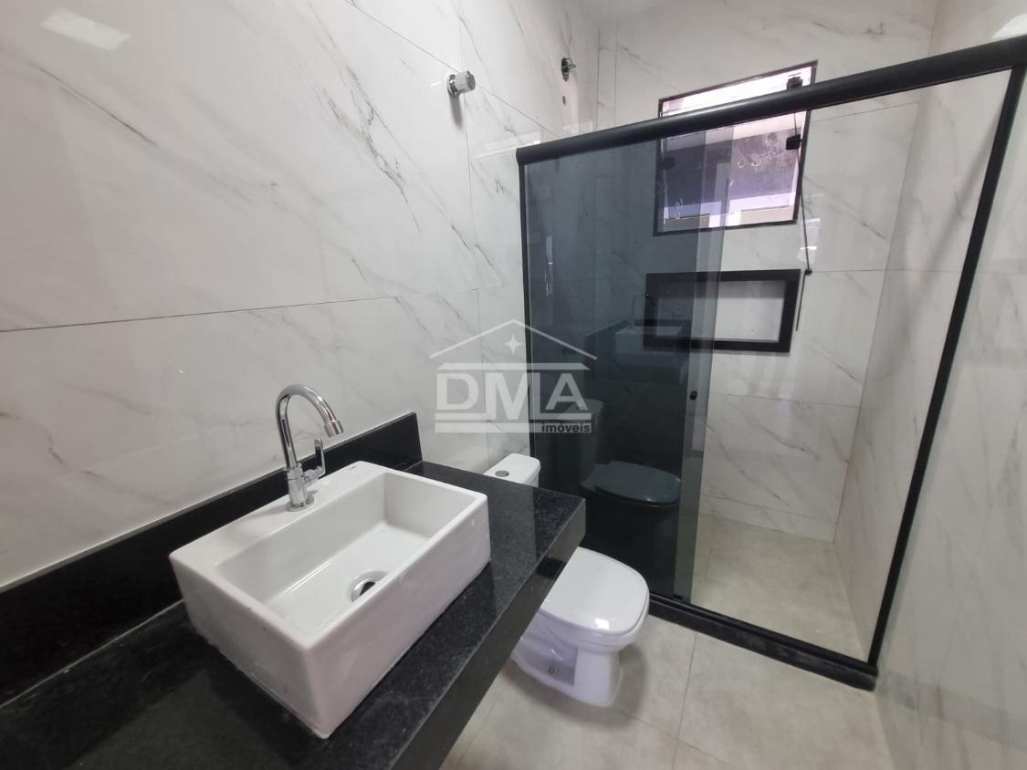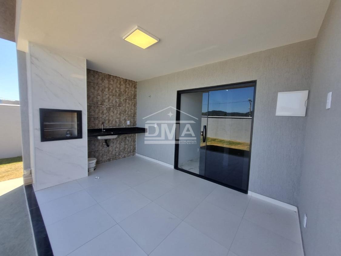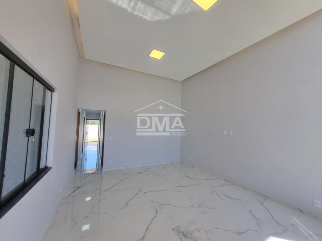 Excelente casa de primeira locação em condomínio, possuindo sala ampla com pé direito alto, três quartos sendo uma suíte, cozinha, banheiro social, área gourmet com churrasqueira, pia, lavabo externo para atender a área gourmet, área de serviço, quintal gramado.