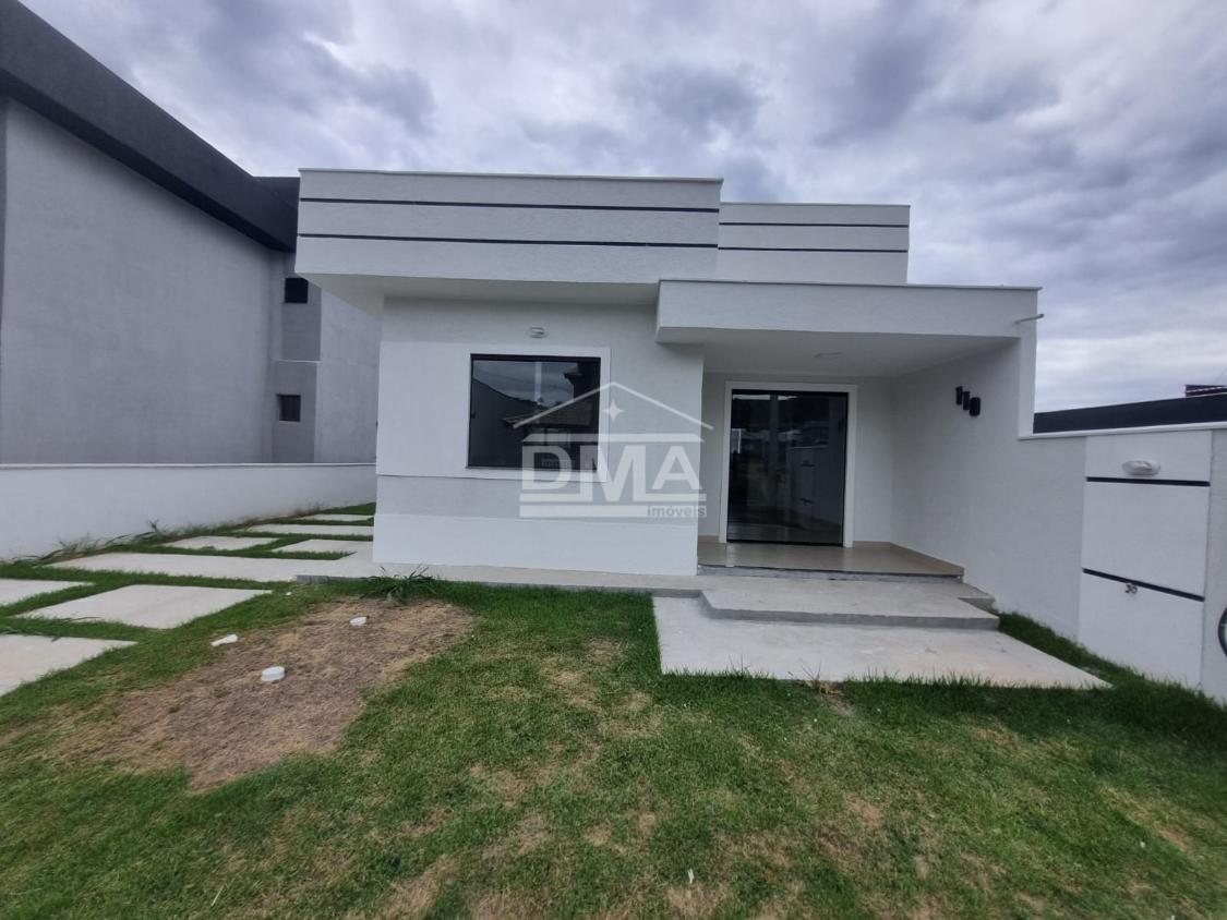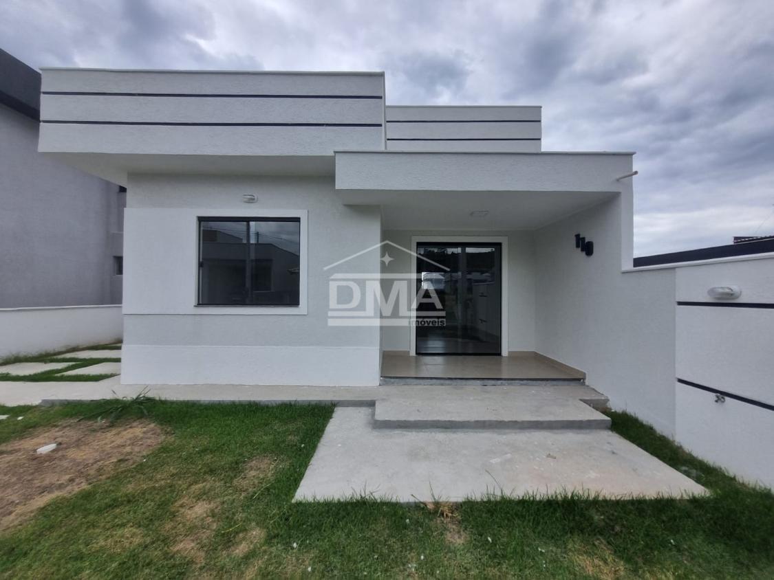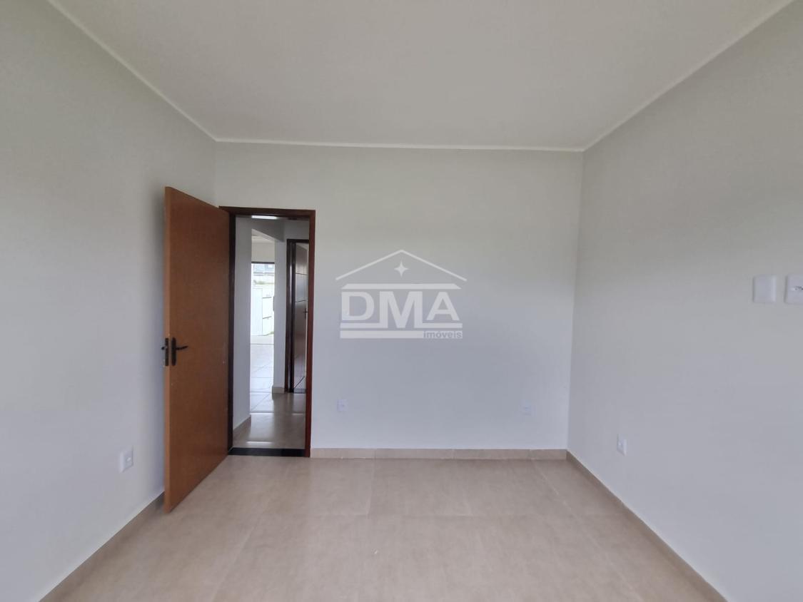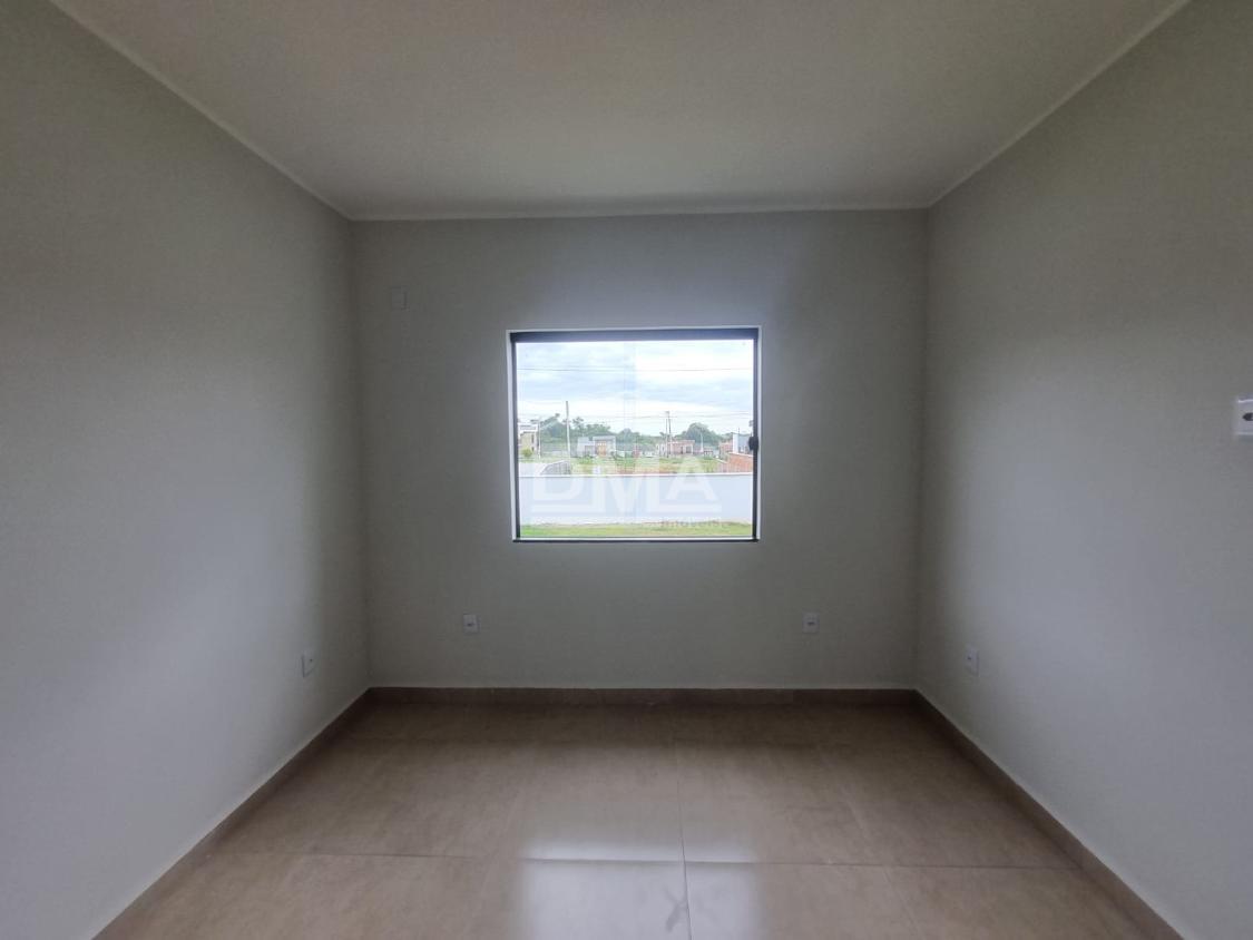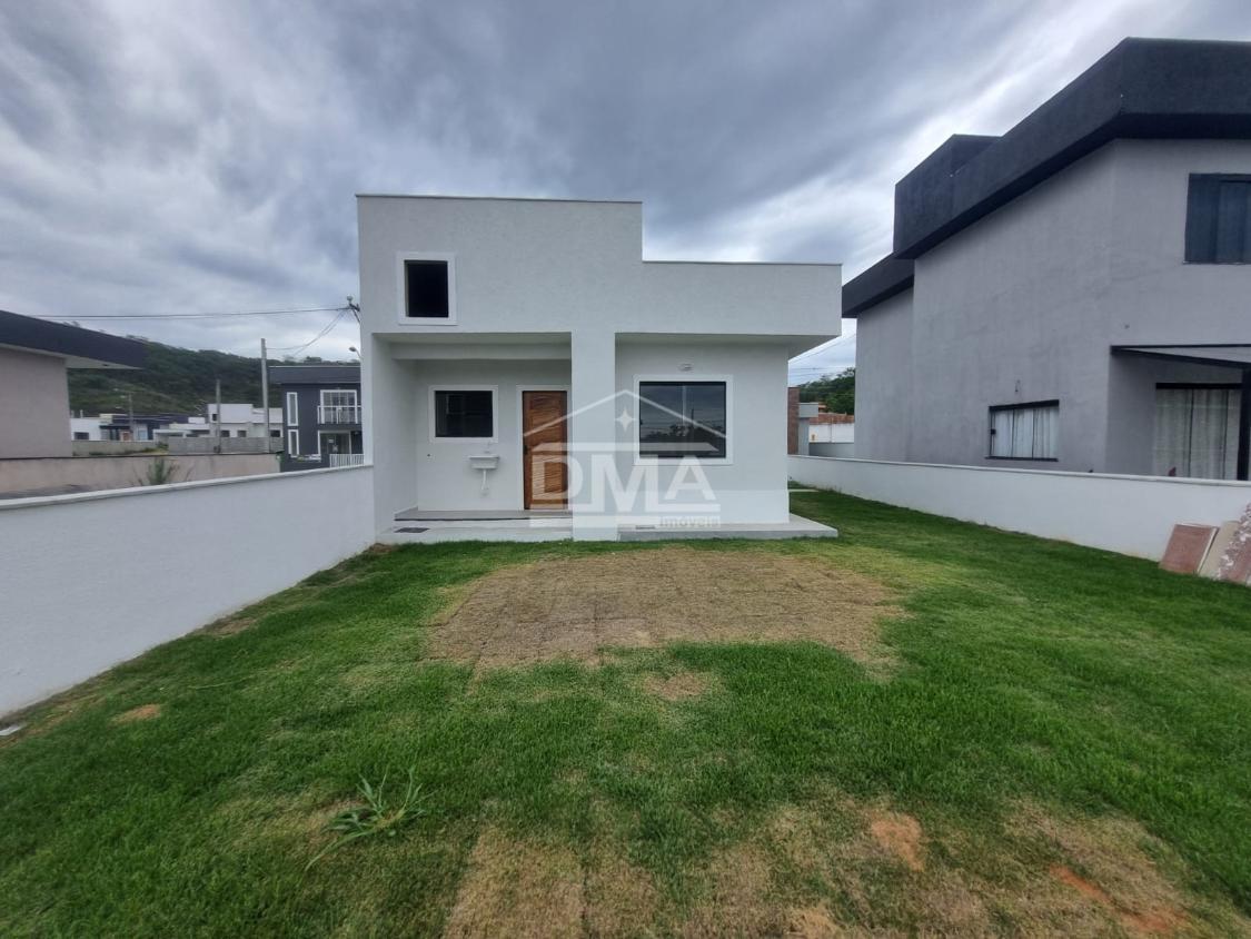 Casa linar, possuindo sala com sanca em gesso, cozinha em conceito aberto com ilha e fogão cooktop 4 bocas, dois quartos sendo uma suíte, banehrio social, área de serviço, vaga para 2 carros, quintal gramado.