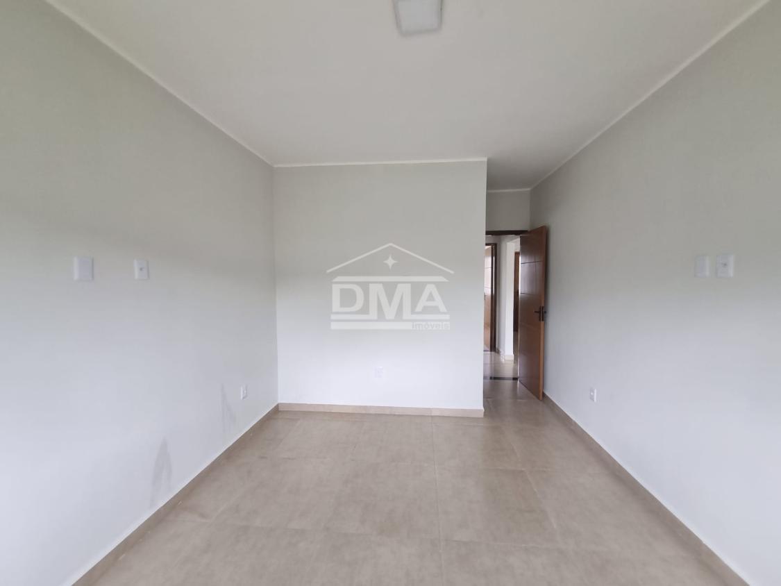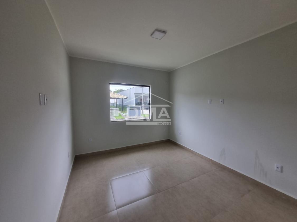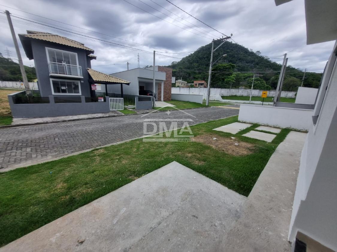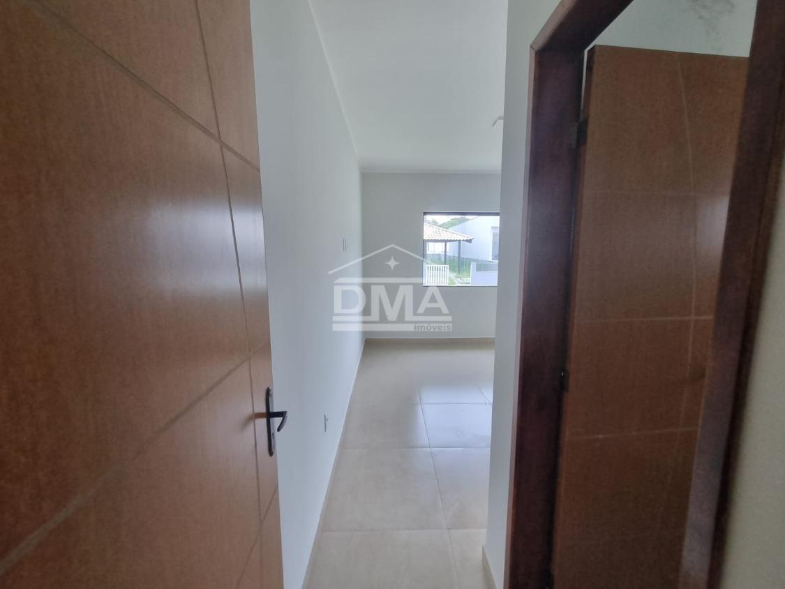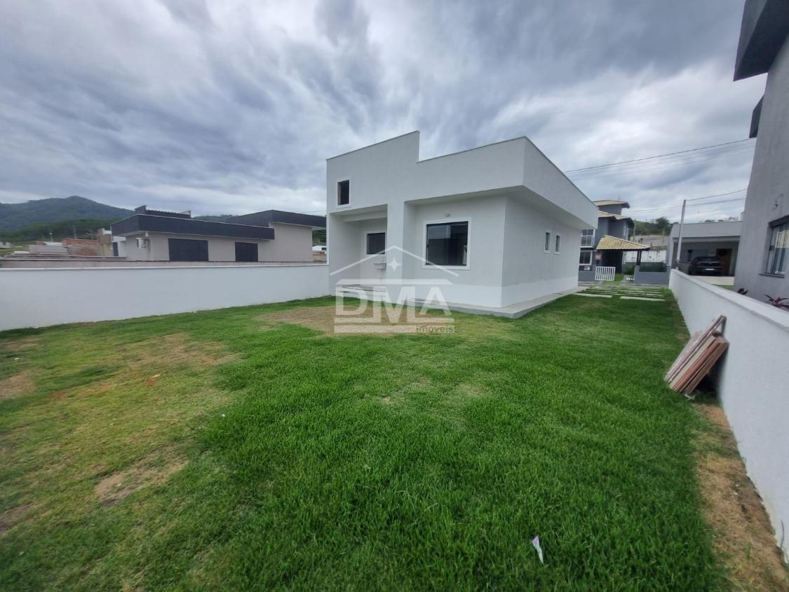 Casa linar, possuindo sala com sanca em gesso, cozinha em conceito aberto com ilha e fogão cooktop 4 bocas, dois quartos sendo uma suíte, banehrio social, área de serviço, vaga para 2 carros, quintal gramado.