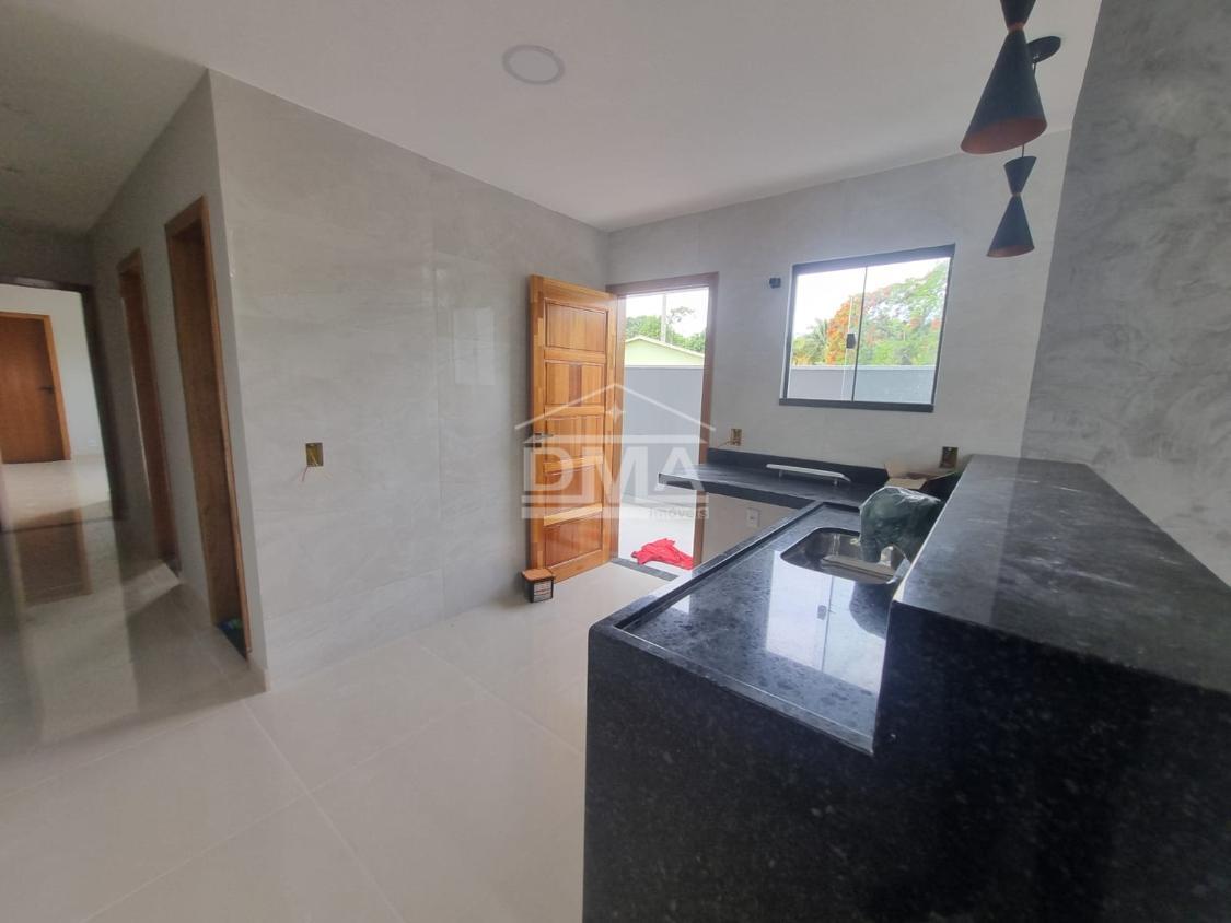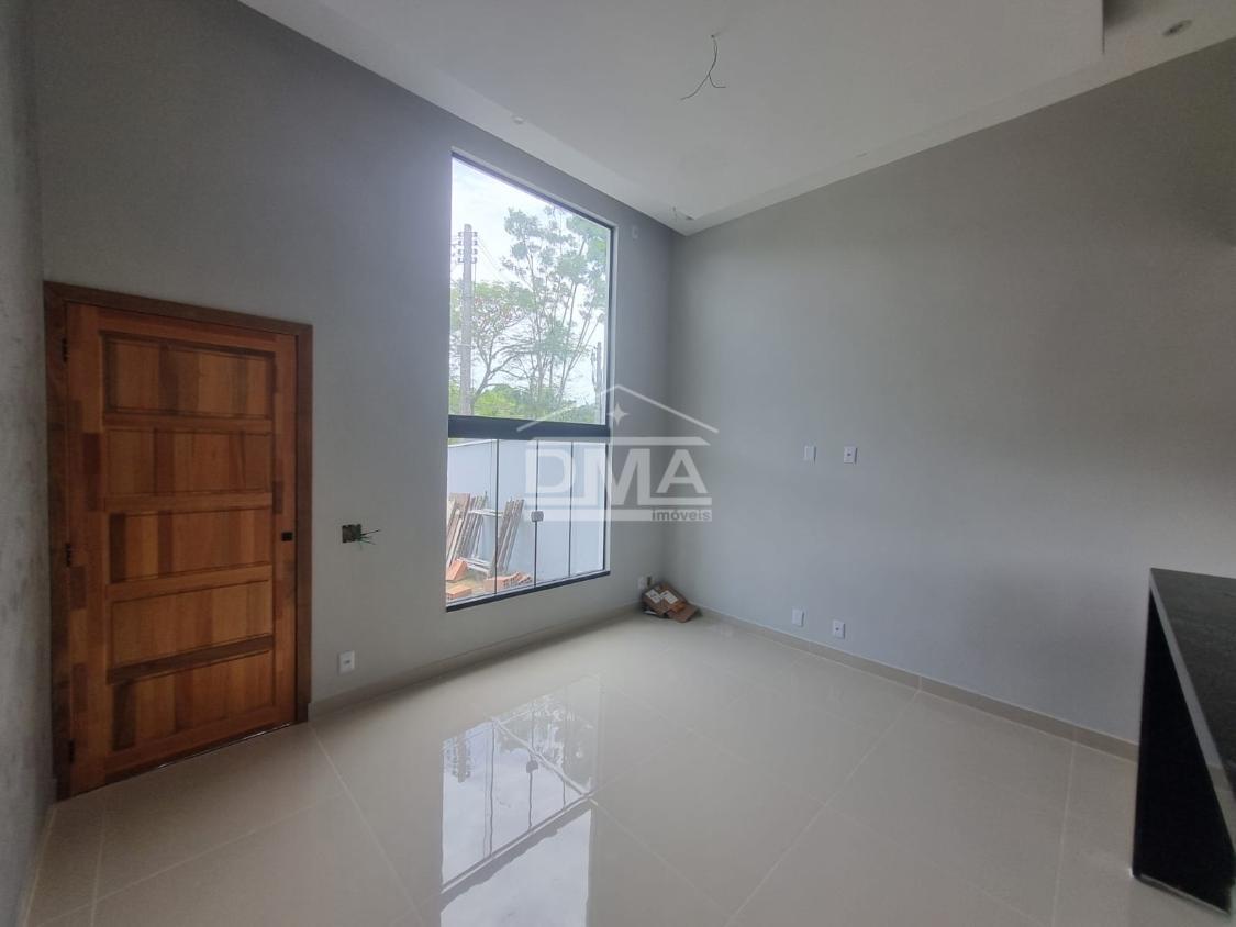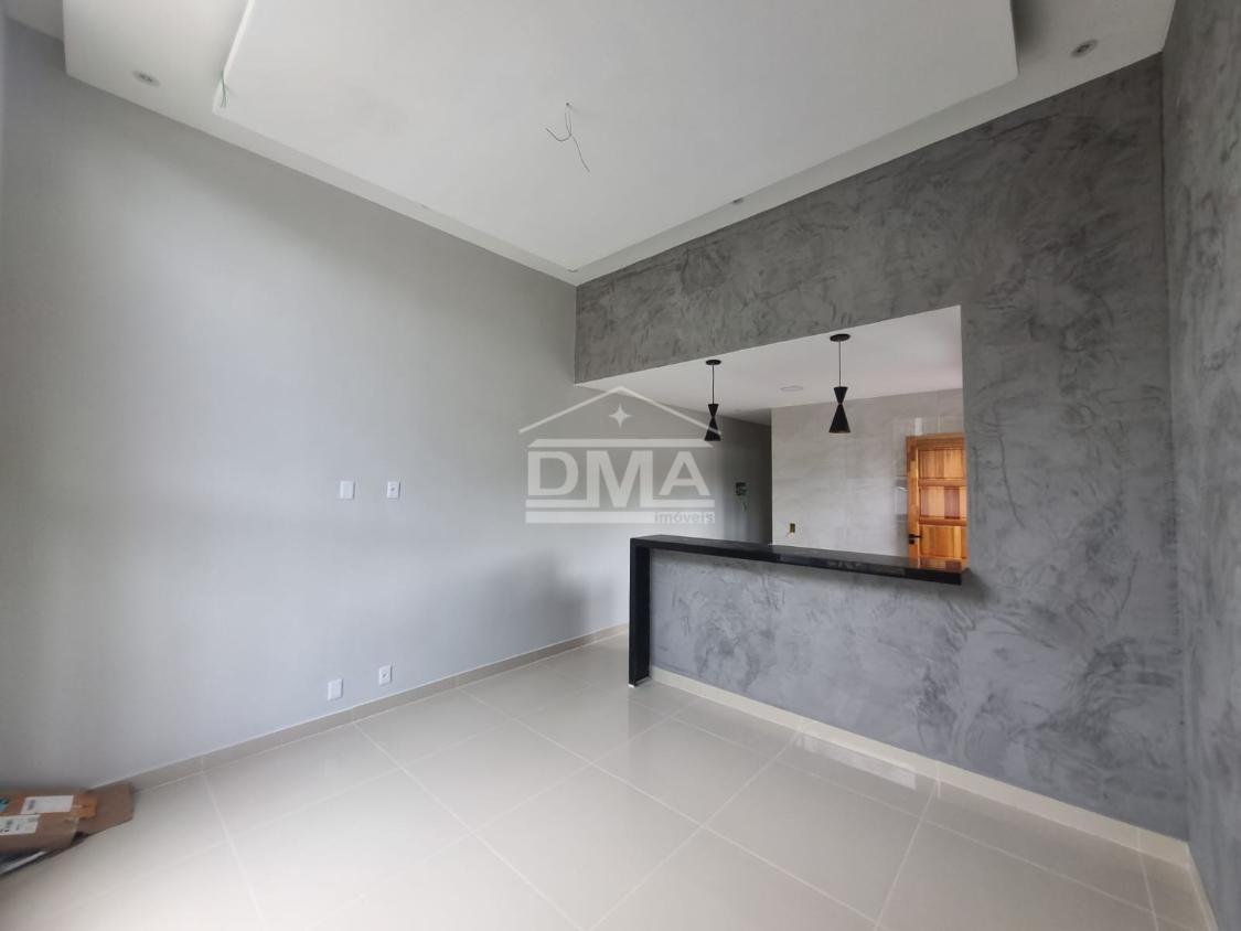 Casa linear, possuindo sala ampla com pé direito alto, cozinha em conceito aberto, banheiro social, dois quartos sendo uma suíte, área de serviço, amplo quintal poço artesiano.