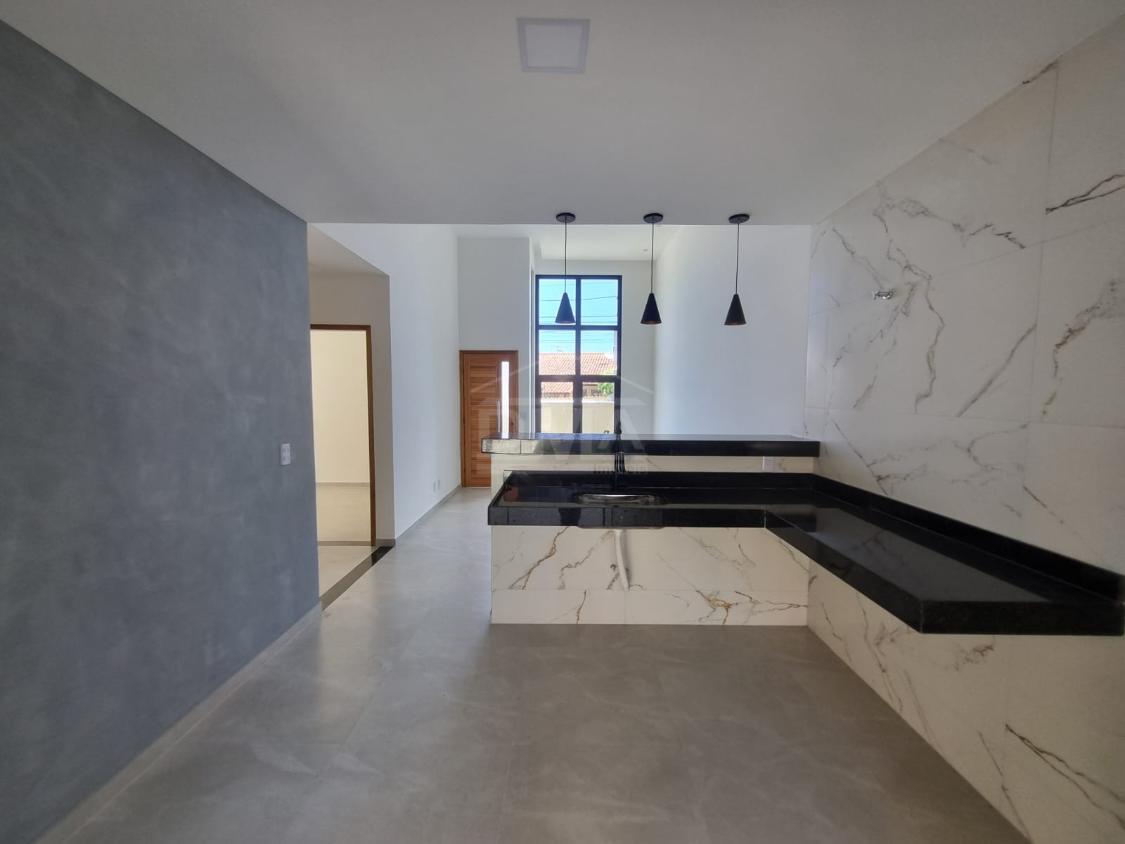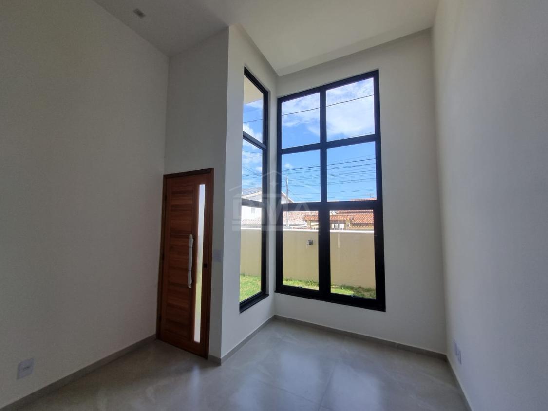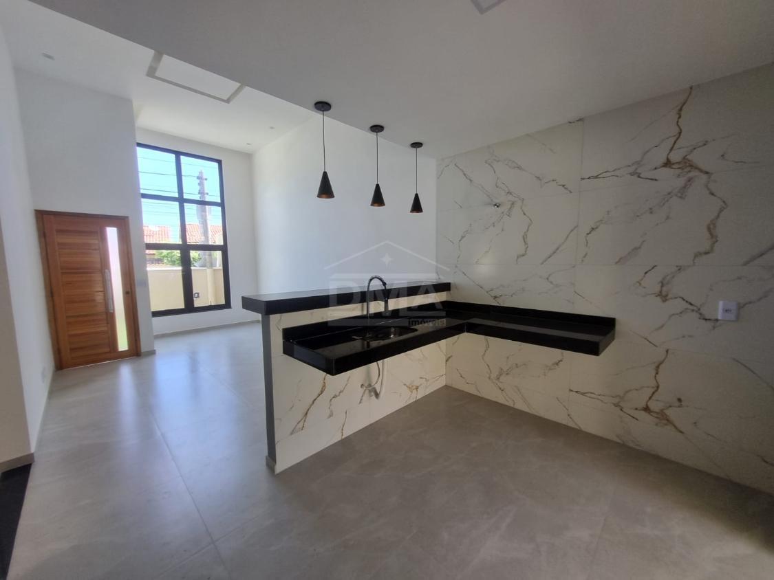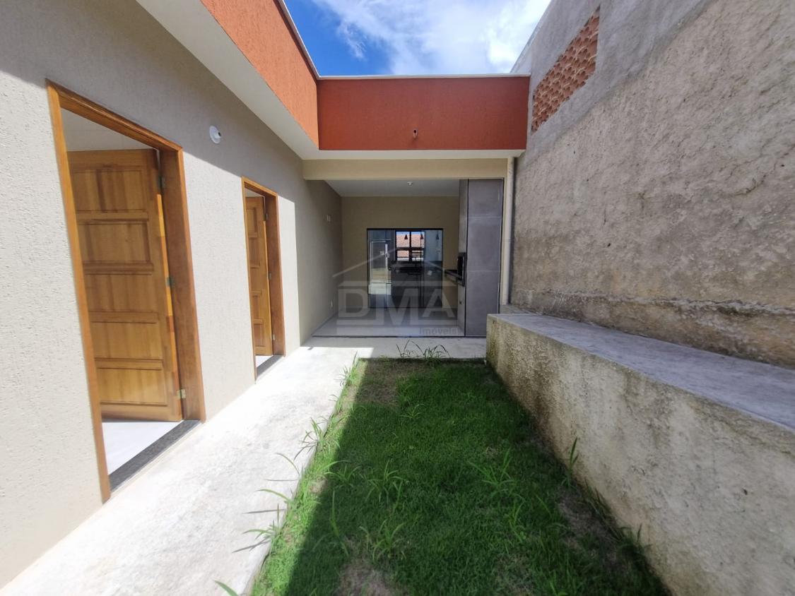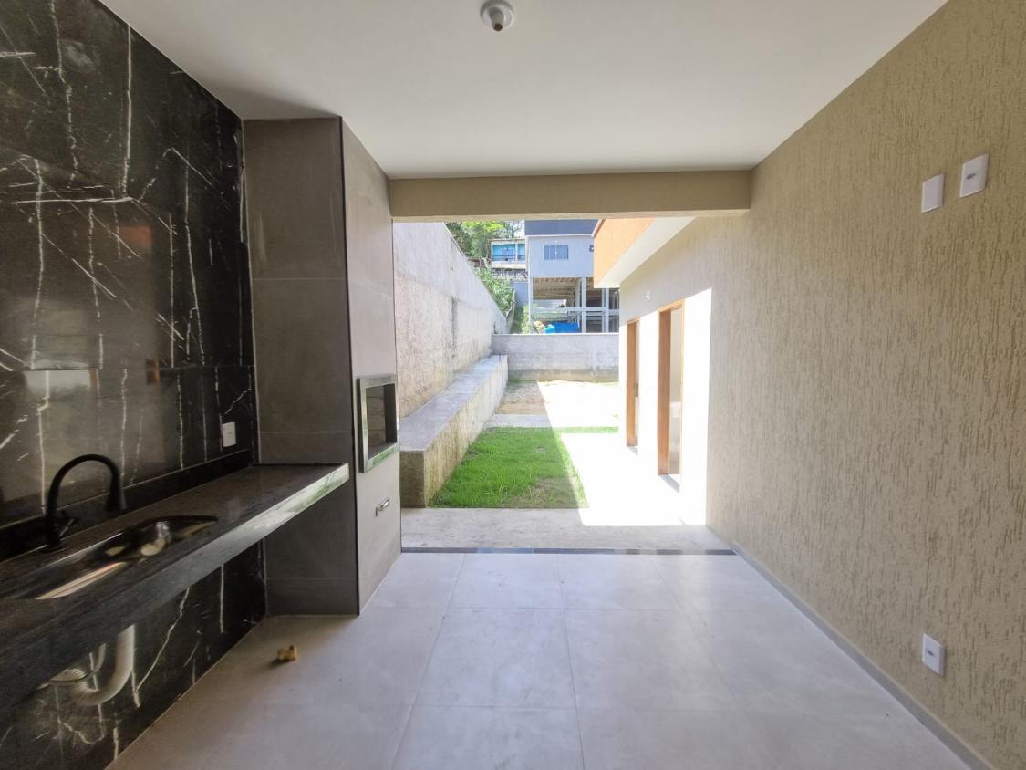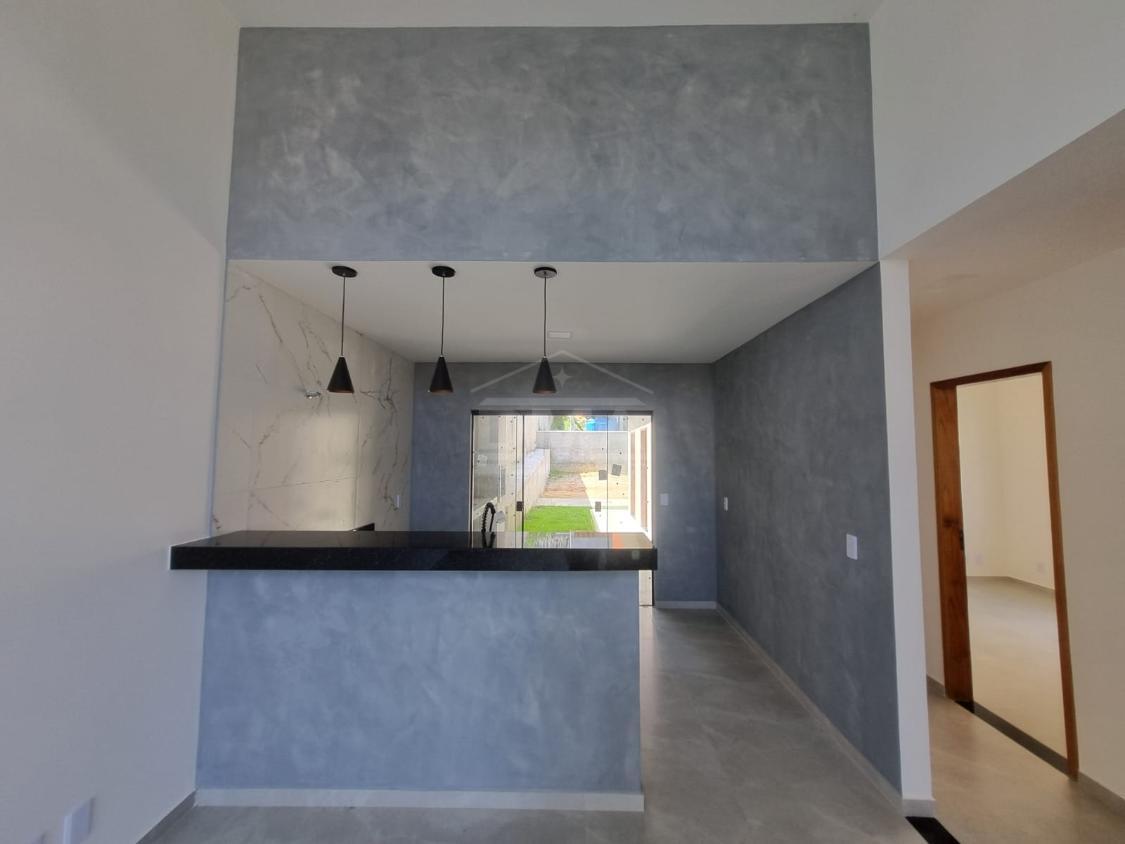Casa linear de primeira locação, possuindo sala ampla com pé direito alto, três quartos sendo uma suíte com closet, cozinha em conceito aberto, banheiro social, área gourmet integrada com churrasqueira, pia, lavabo externo para atender a área gourmet, pergolado em aluminio trazendo destaque ao imóvel, lavanderia fechada, cisterna 10 mil litros, abstecimento pela águas do RIO.