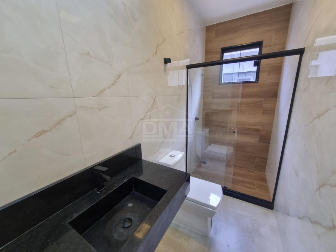 Excelente casa de primeira locação em condomínio, possuindo sala ampla com pé direito alto, fechadura eletronica, três quartos sendo uma suíte, cozinha em conceito aberto, banheiro social, área gourmet integrada com churrasqueira, pia, lavabo externo para atender a área gourmet, lavanderia fechada.