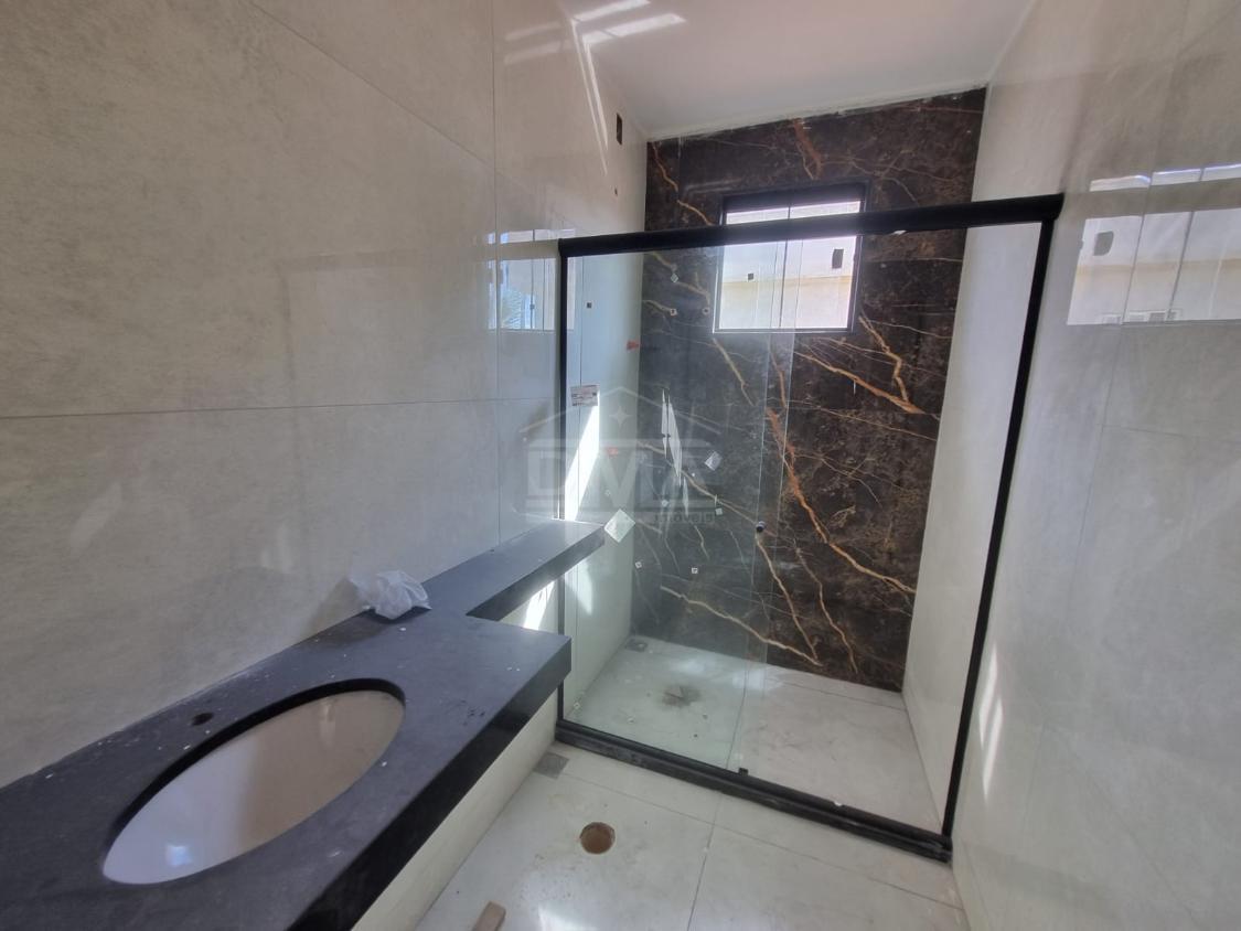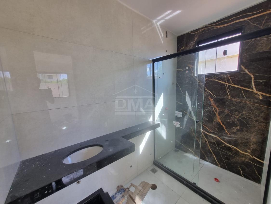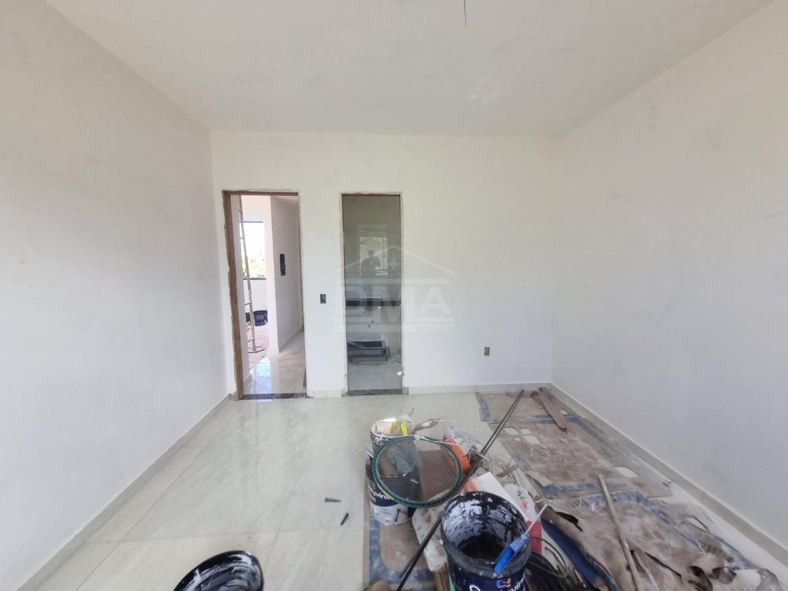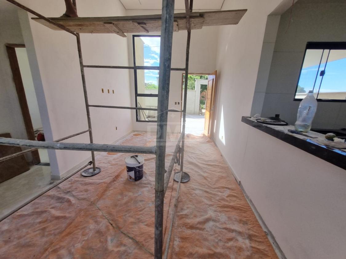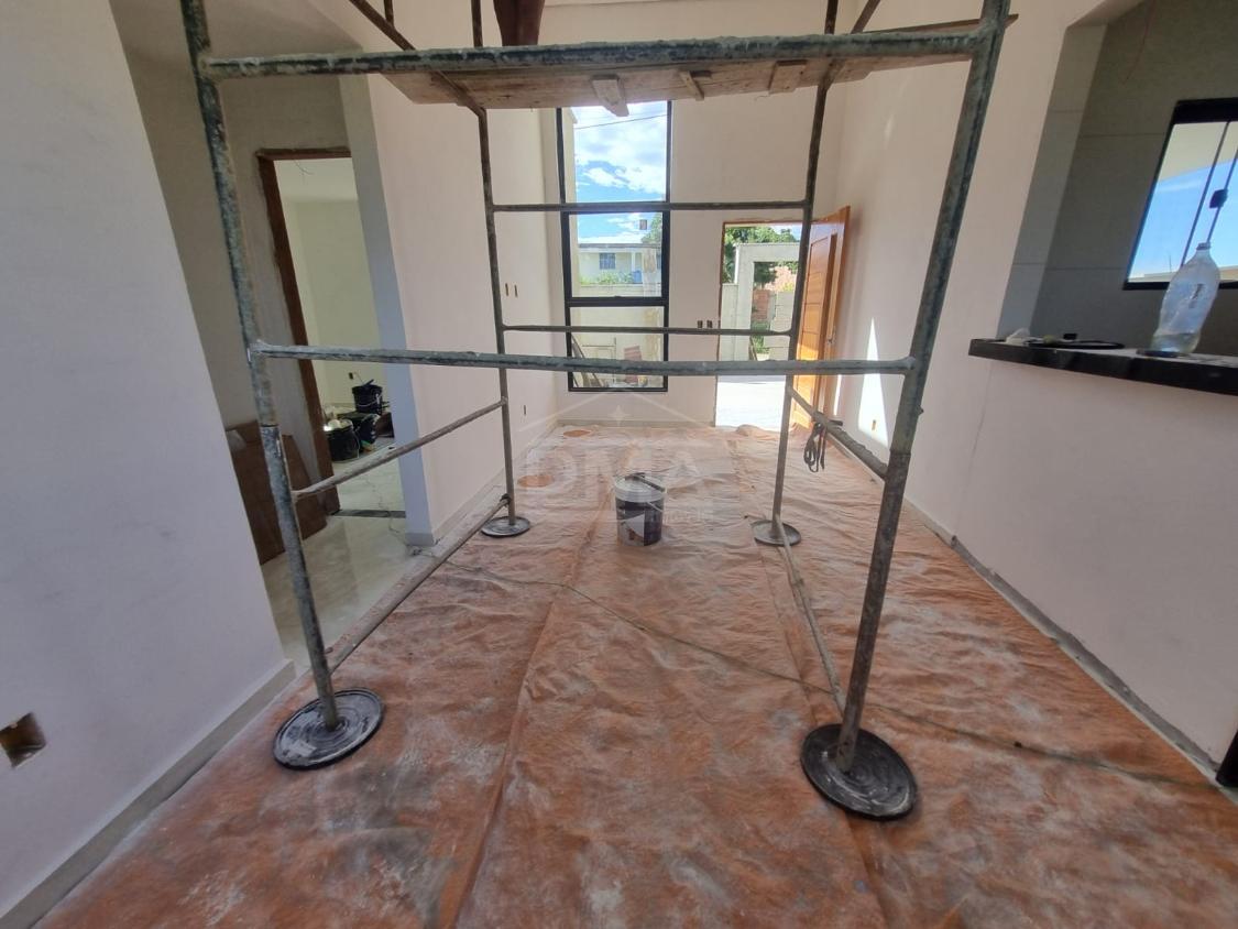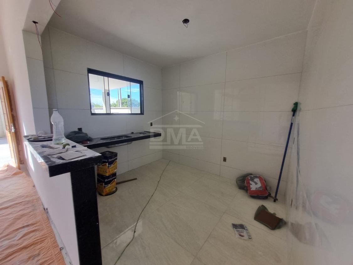 Casa linear, possuindo sala ampla com pé direito alto e dois ambientes, cozinha, banheiro social, dois quartos amplos sendo um suíte, área de serviço.