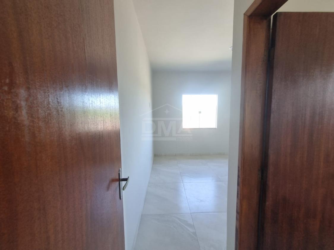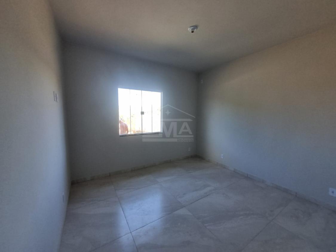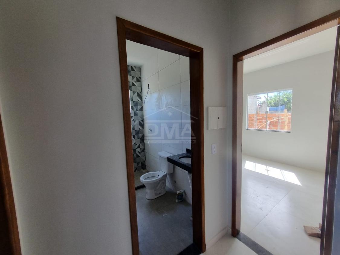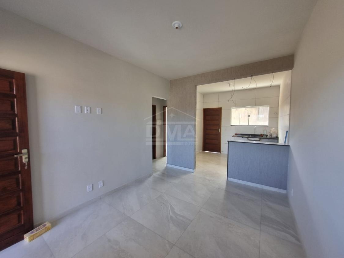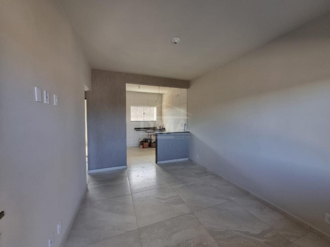 Casa linear, possuindo sala, cozinha americana, banheiro social, dois quartos sendo uma suíte, varanda, área de serviço.
