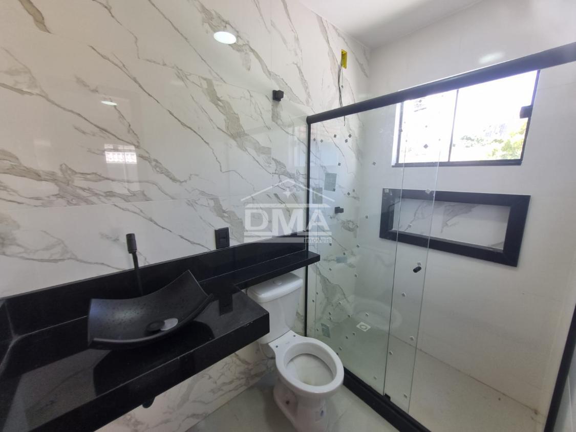 Excelente casa linear de primeira locação, três quartos sendo uma suíte, todos rebaixados em gesso, sala ampla com fechadura eletronica, rebaixamento em gesso e sanca, parede em cimento queimado, cozinha americana com pia e bancada em granito preto, torneira gourmet, torre de tomadas, banheiro social e suíte completos com bancada em granito preto e pia na cor preta com cuba suspensa, blindex e nicho, área de serviço, garagem coberta, amplo quintal.
