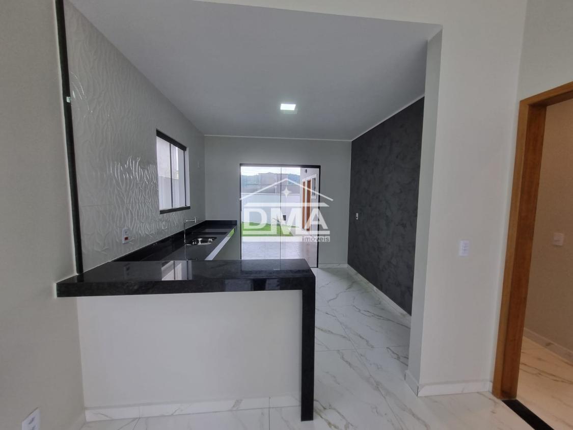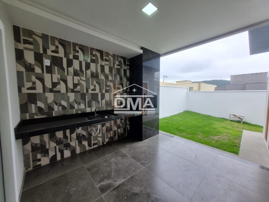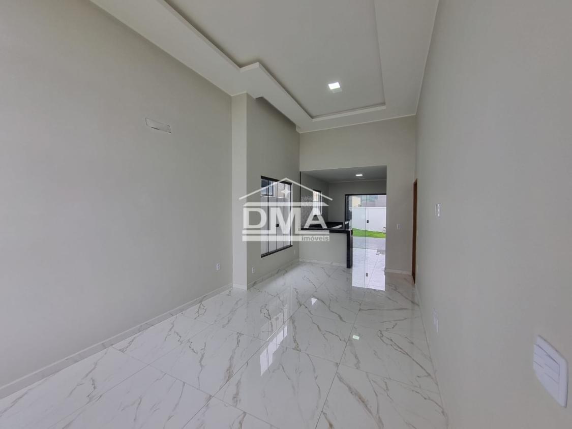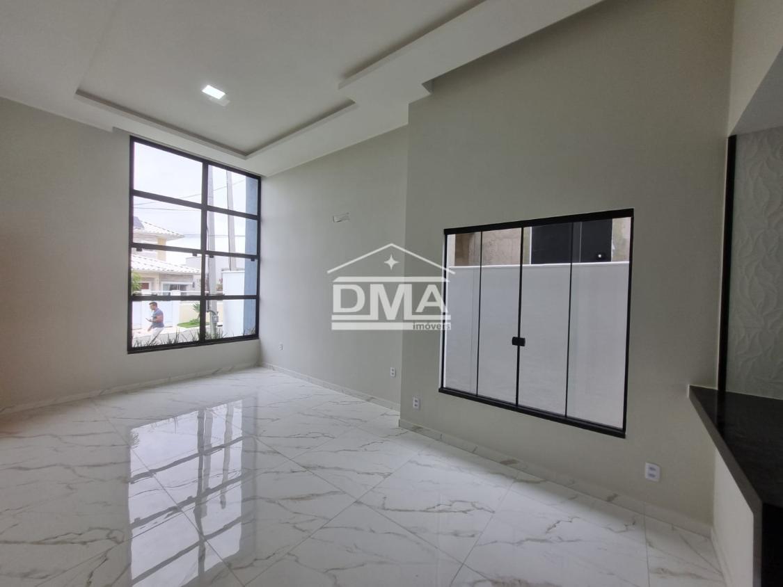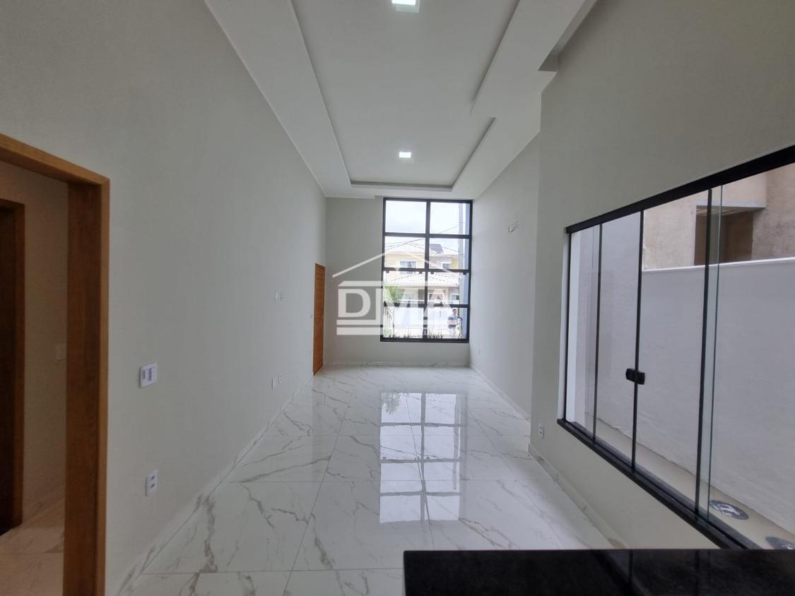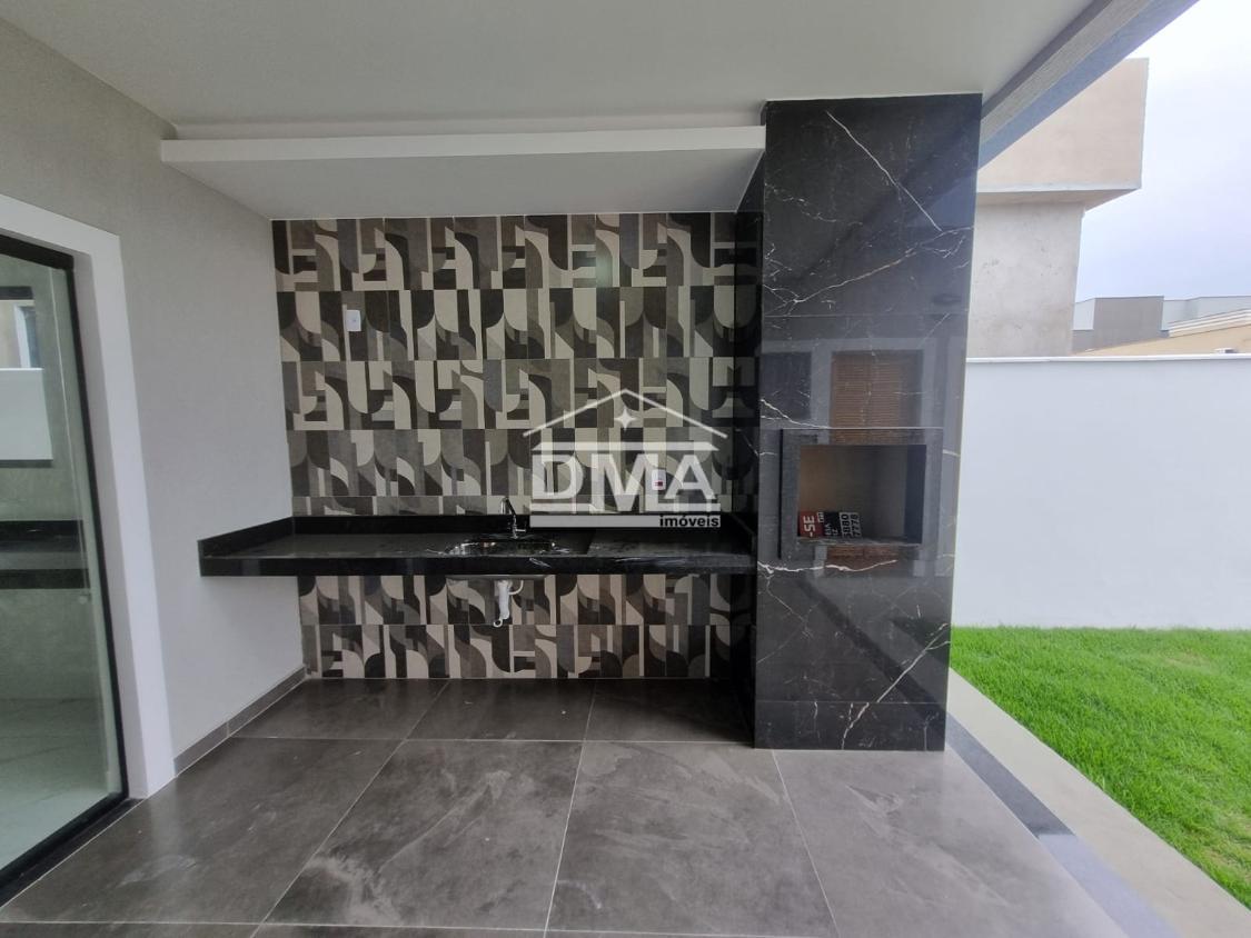 Excelente casa de primeira locação em condomínio, possuindo sala ampla com pé direito alto, três quartos sendo uma suíte com closet, cozinha em conceito aberto, banheiro social, área gourmet integrada com churrasqueira, pia, lavabo externo para atender a área gourmet, lavanderia fechada, quintal gramado.