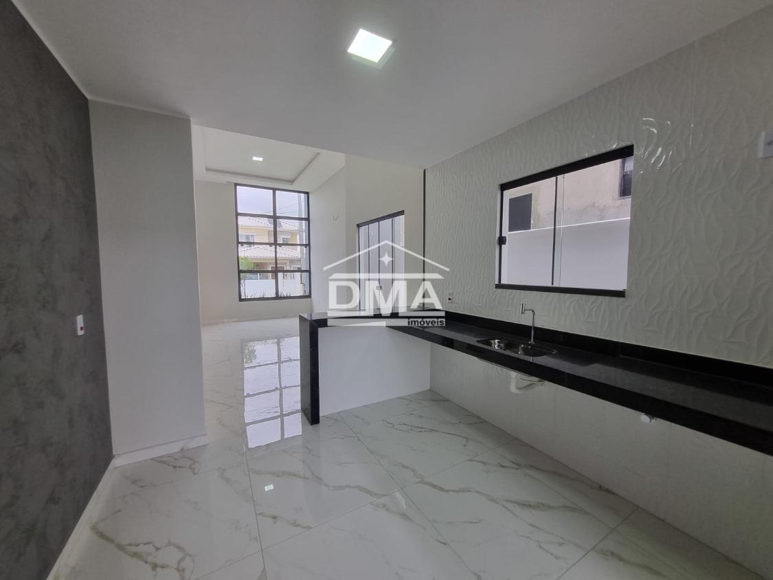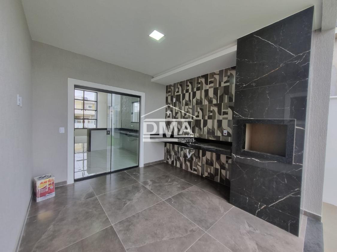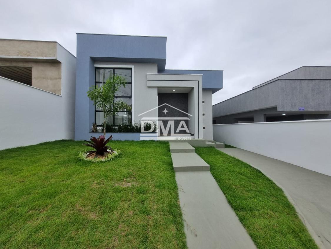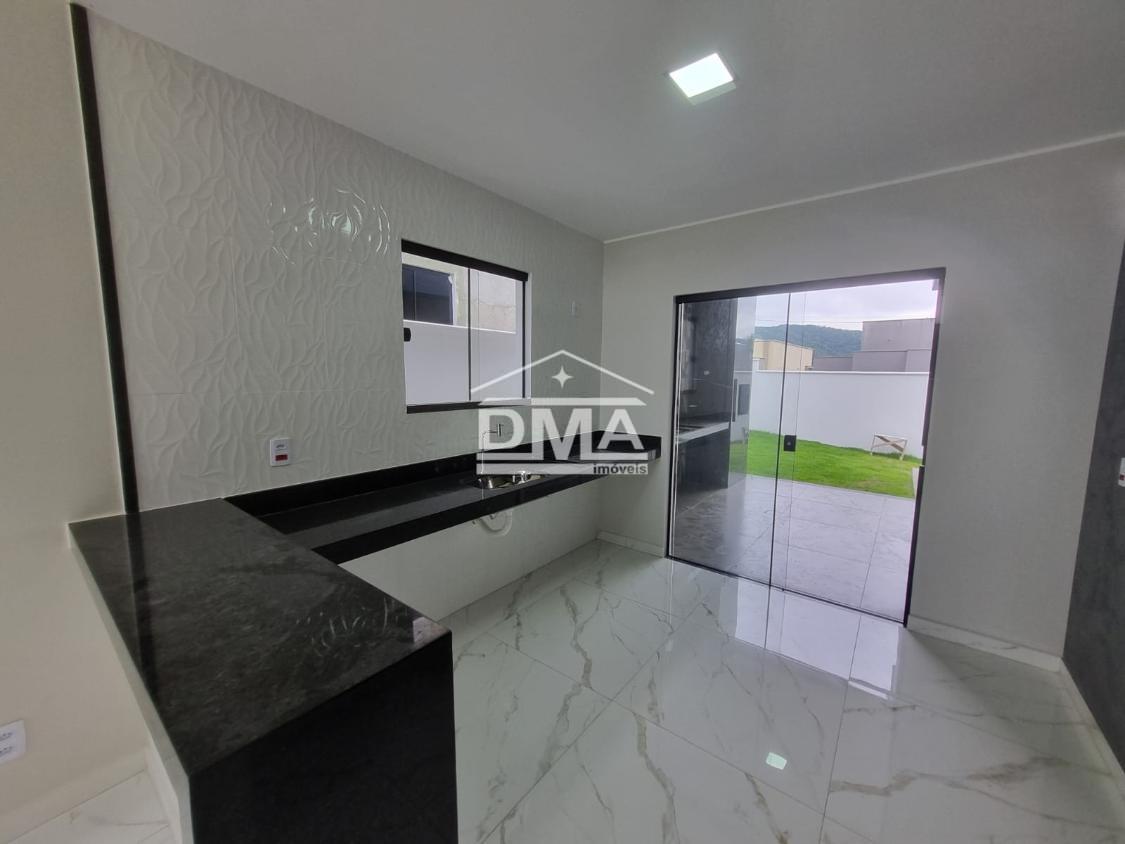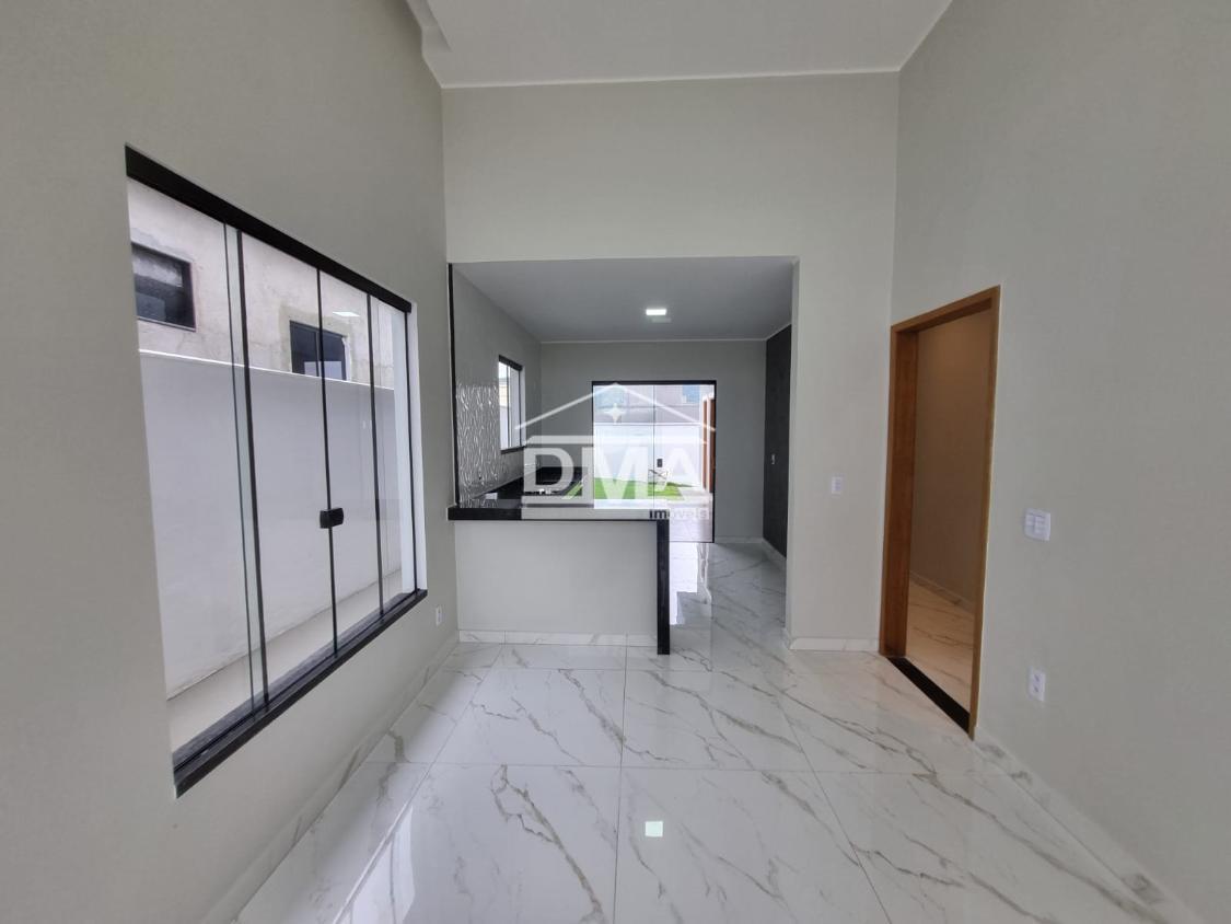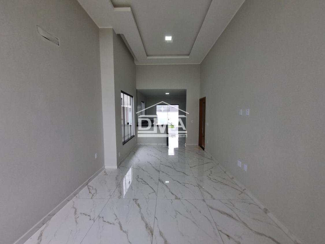 Excelente casa de primeira locação em condomínio, possuindo sala ampla com pé direito alto, três quartos sendo uma suíte com closet, cozinha em conceito aberto, banheiro social, área gourmet integrada com churrasqueira, pia, lavabo externo para atender a área gourmet, lavanderia fechada, quintal gramado.