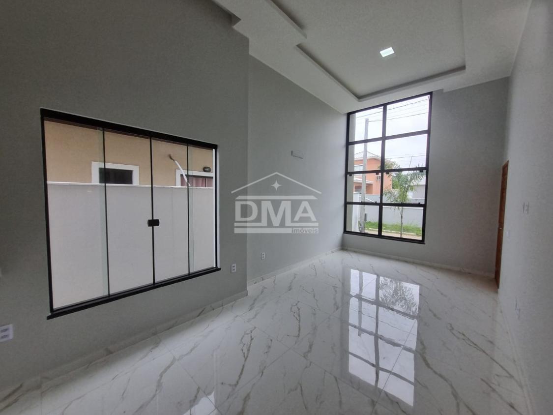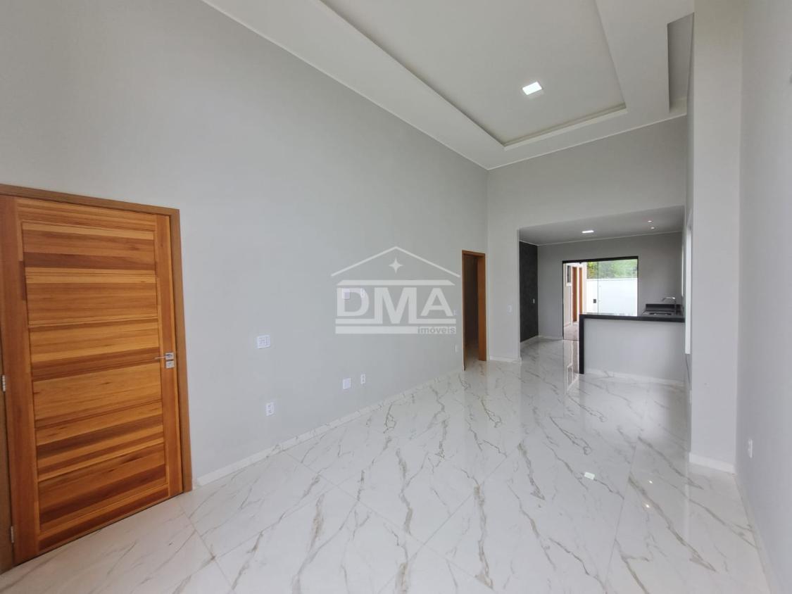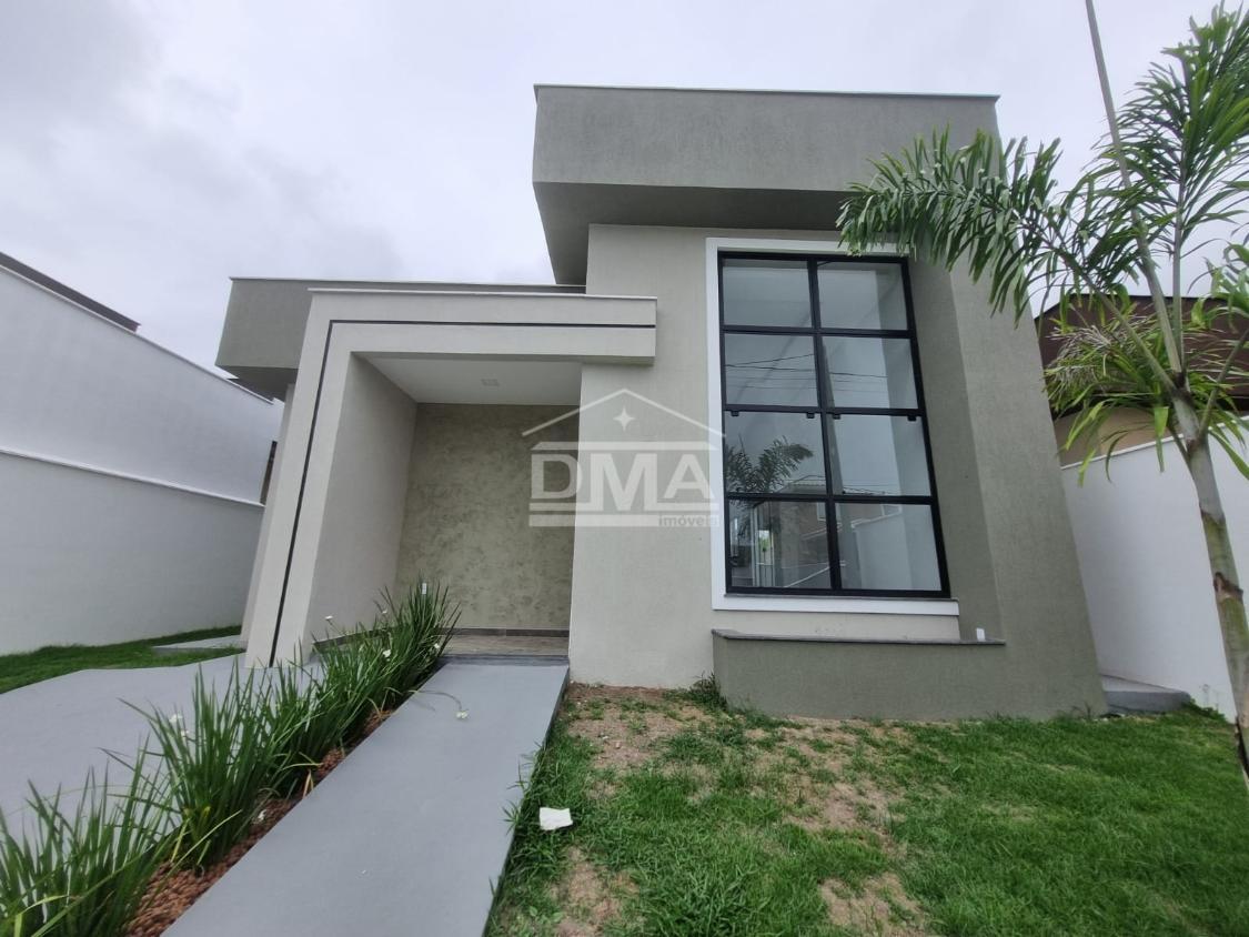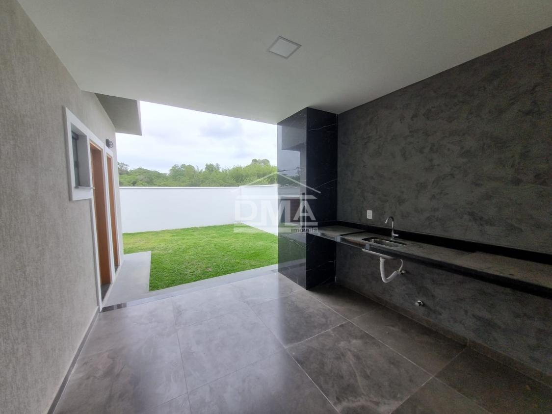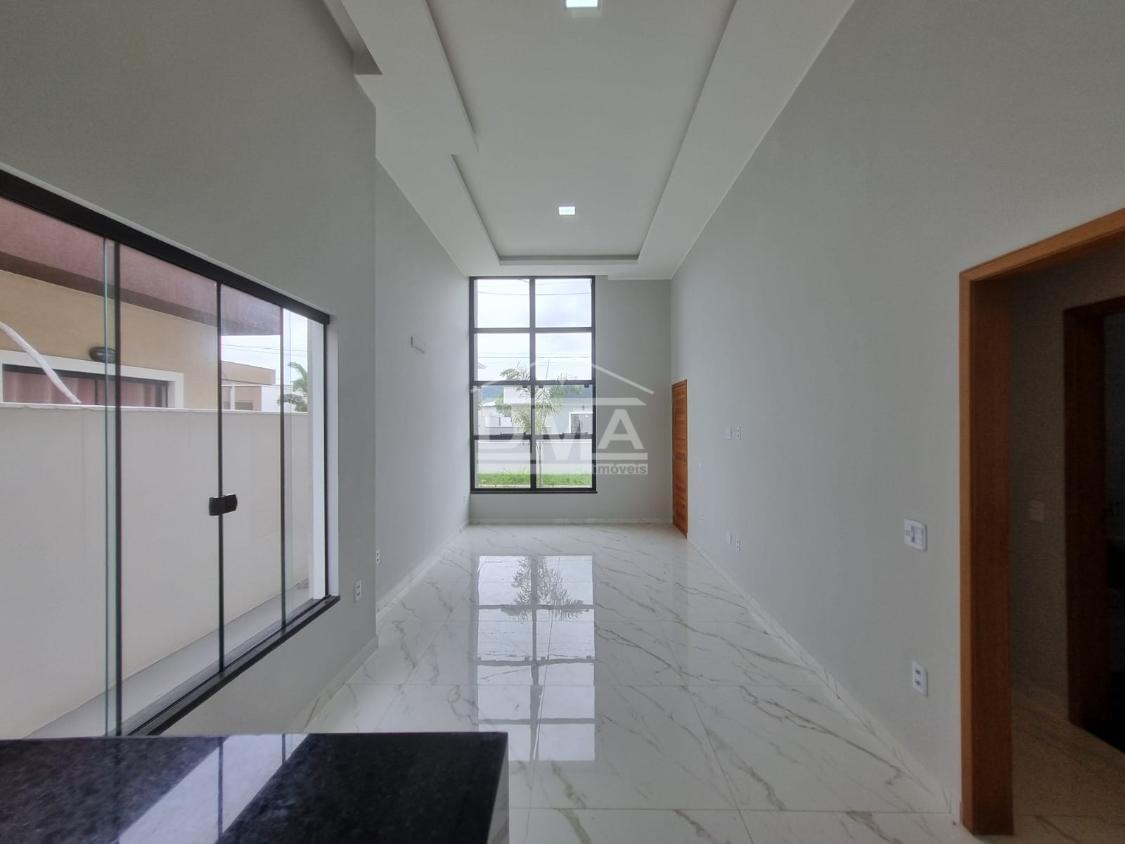 Excelente casa de primeira locação em condomínio, possuindo sala ampla com pé direito alto, três quartos sendo uma suíte com closet, cozinha em conceito aberto, banheiro social, área gourmet integrada com churrasqueira, pia, lavabo externo para atender a área gourmet, lavanderia fechada, quintal gramado.