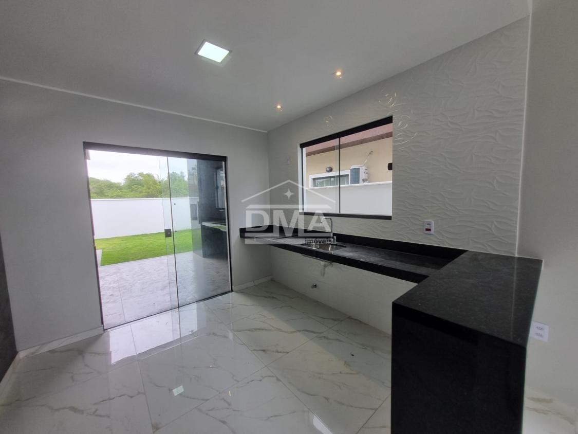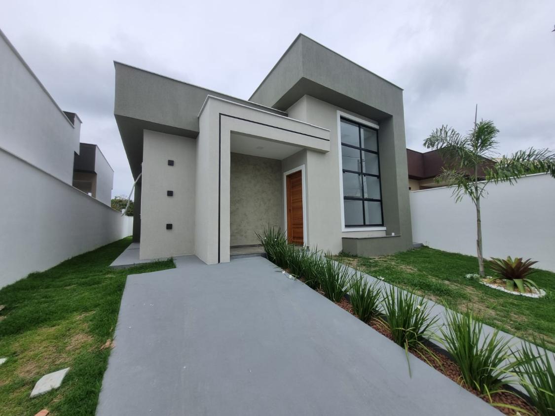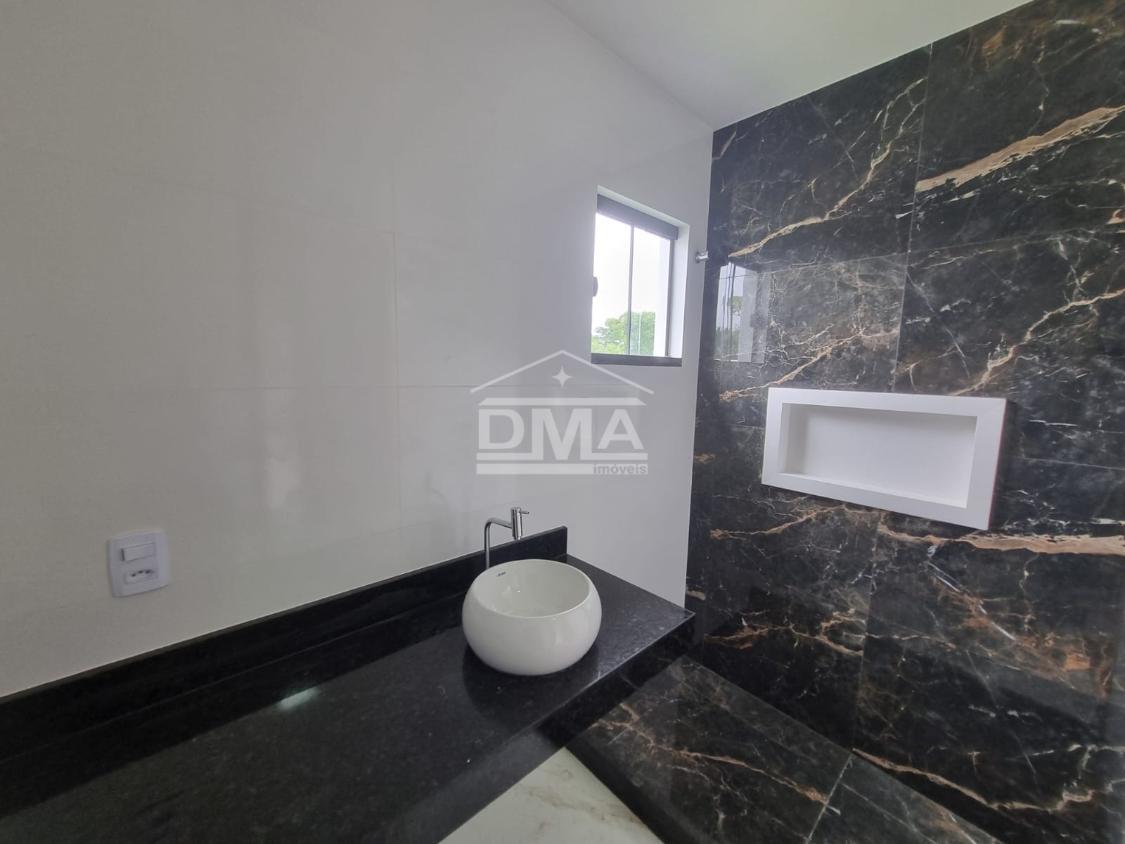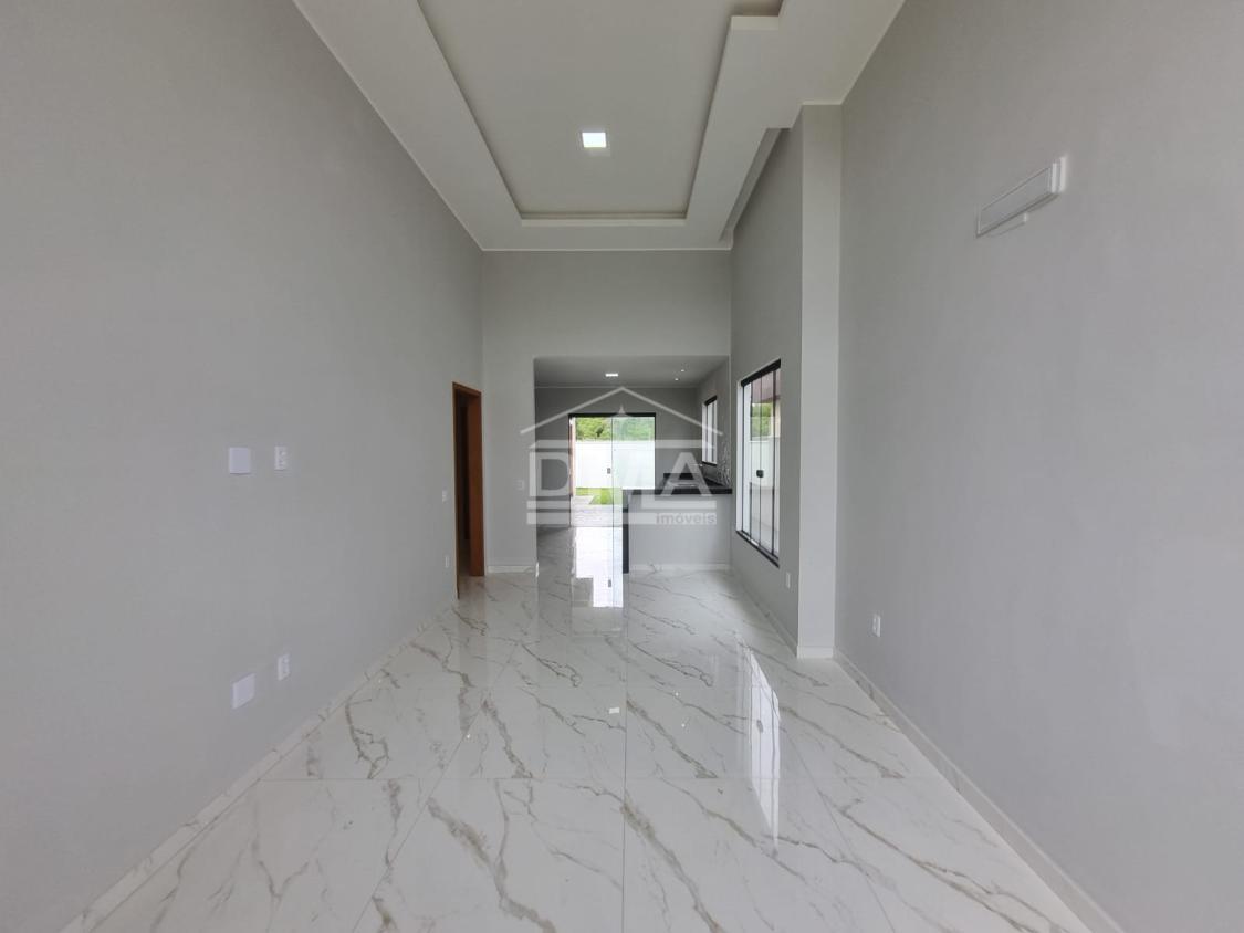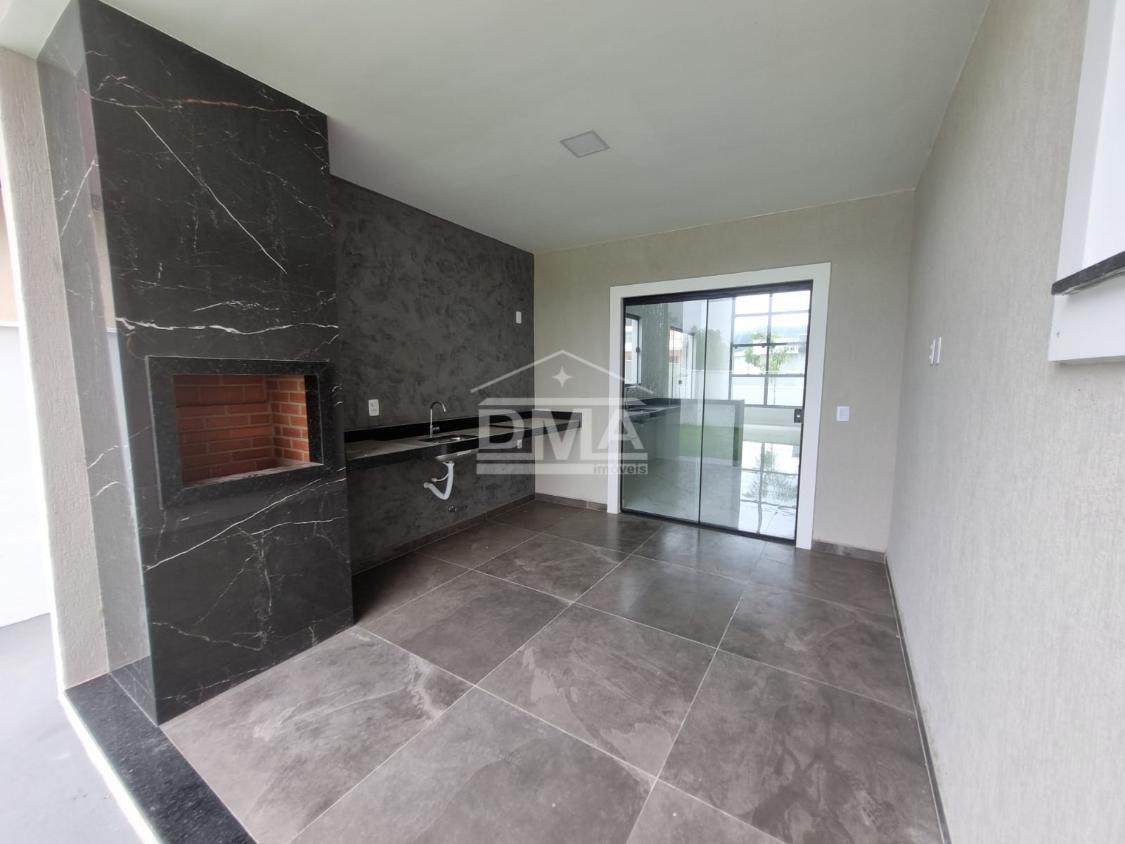 Excelente casa de primeira locação em condomínio, possuindo sala ampla com pé direito alto, três quartos sendo uma suíte com closet, cozinha em conceito aberto, banheiro social, área gourmet integrada com churrasqueira, pia, lavabo externo para atender a área gourmet, lavanderia fechada, quintal gramado.