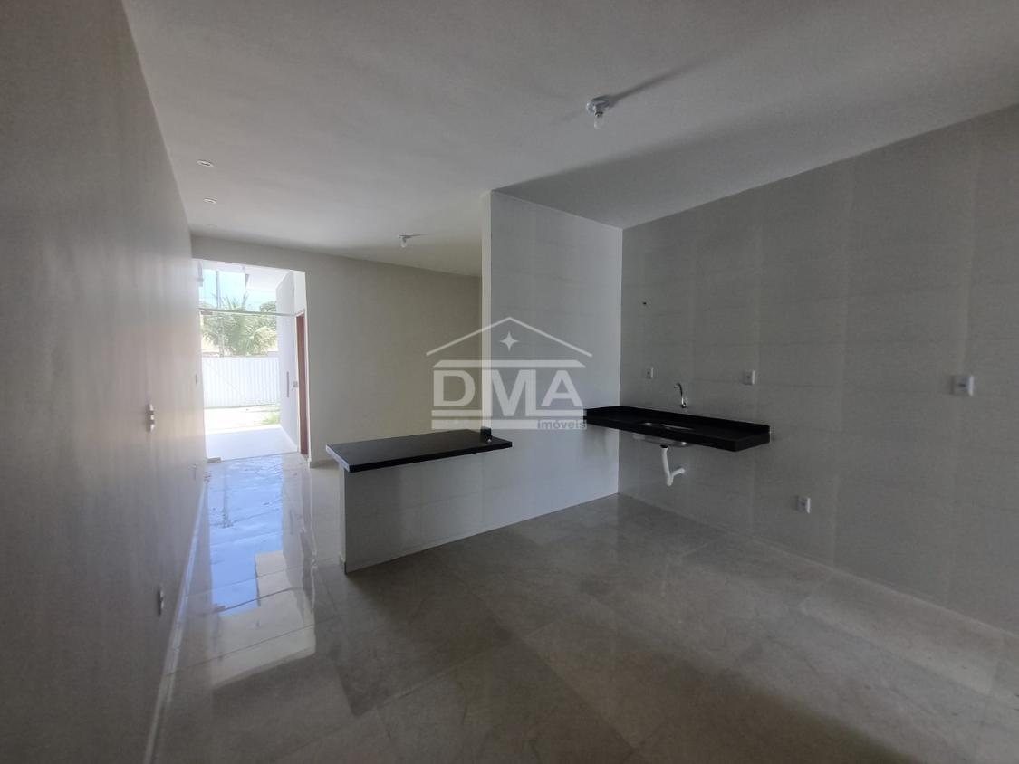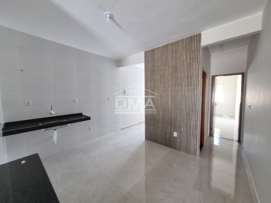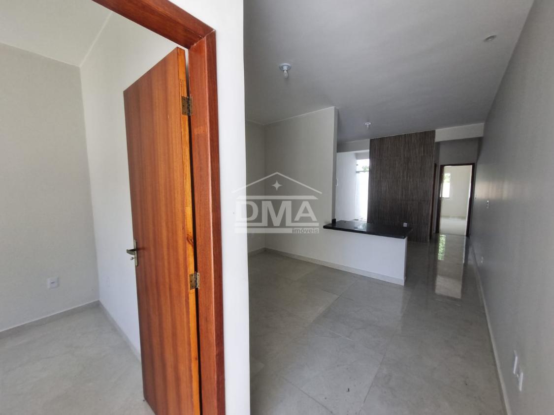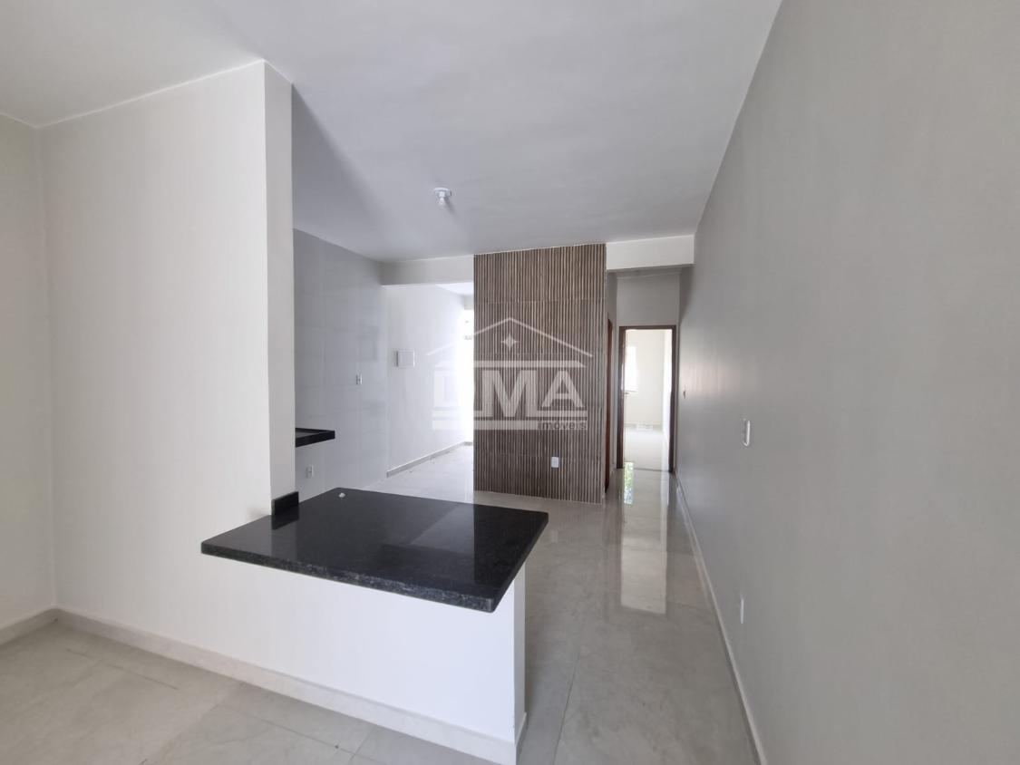 Casa possuindo sala, cozinha americana, banheiro social com nicho e blindex, dois quartos, área de serviço, quintal nos fundos, vaga para carro, poço artesiano, piso em porcelanato.