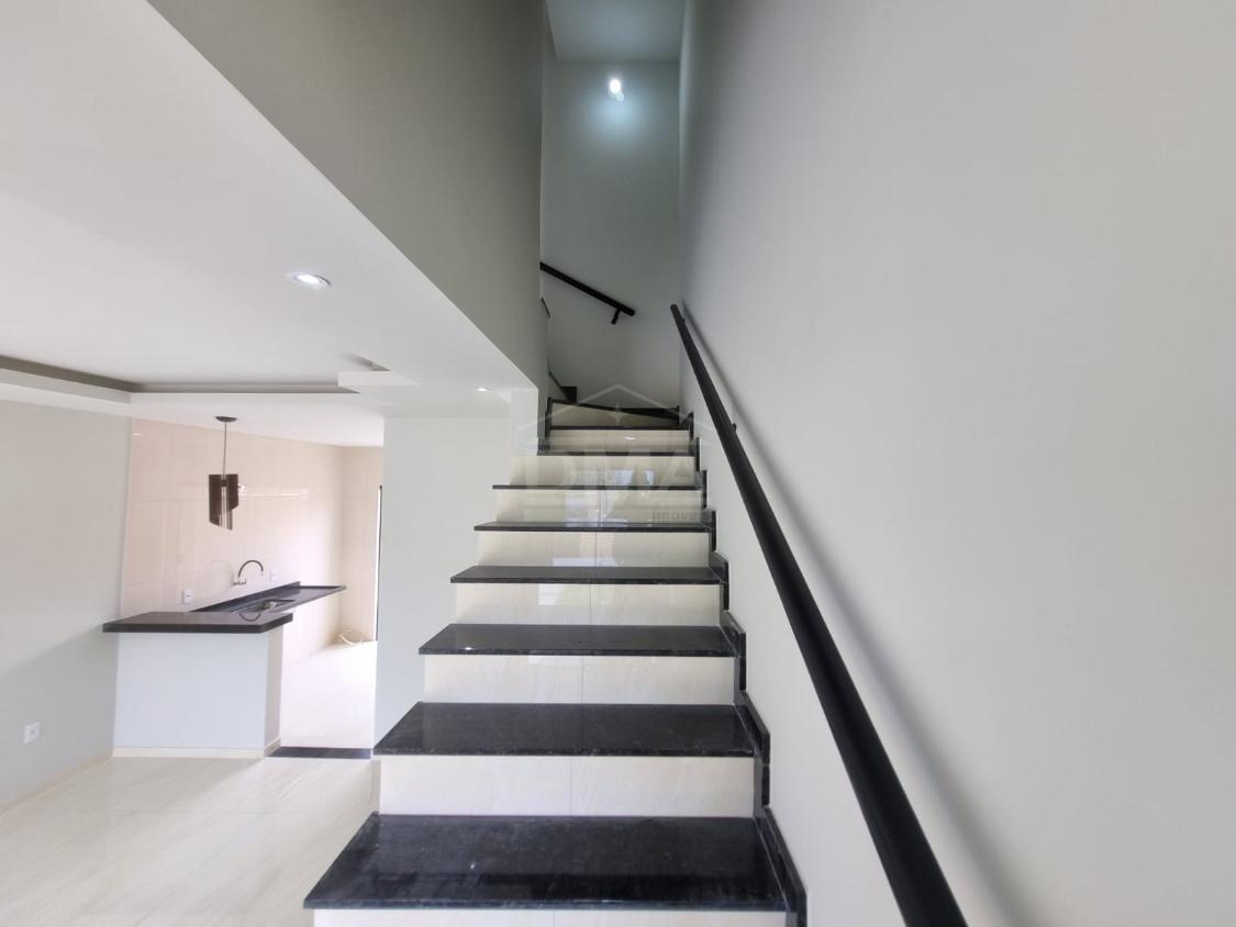 Casas duplex, possuindo no primeiro pavimento sala com sanca em gesso, banheiro social, cozinha, varanda, área de serviço, segundo pavimento duas suítes sendo uma com sacada.