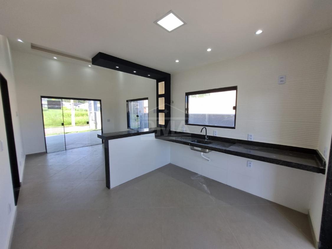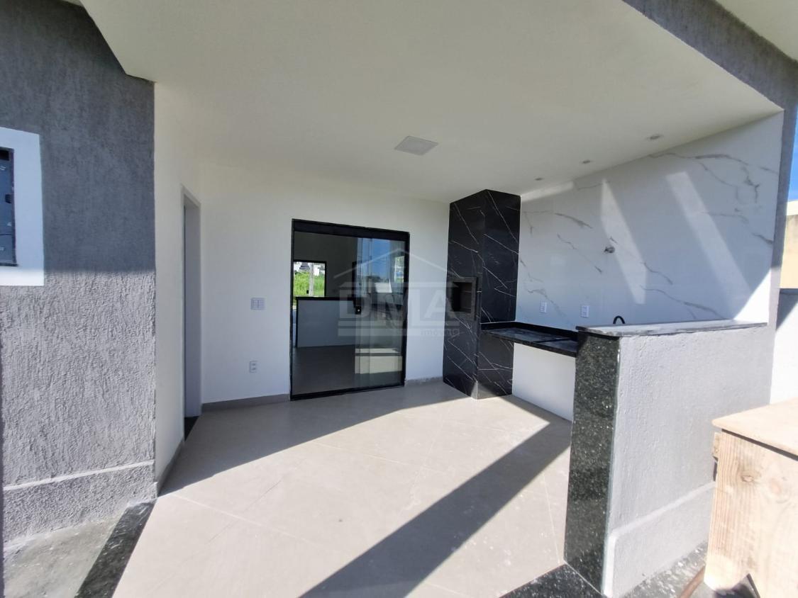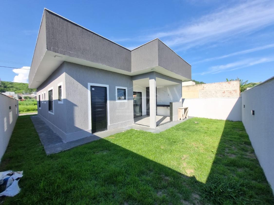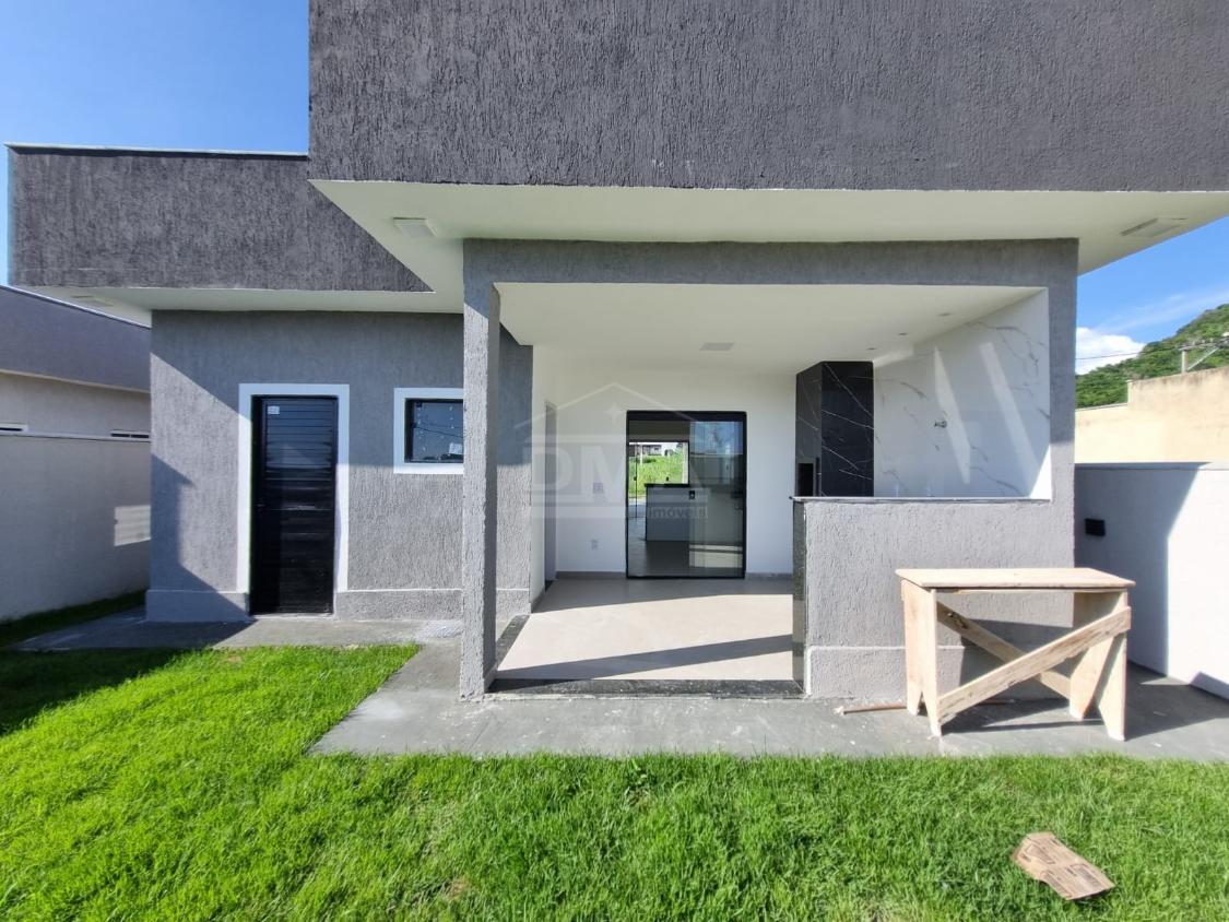 Casa linear, possuindo, cozinha em conceito aberto, dois quartos sendo duas suítes, banherio social, área gourmet com churrasqueira, pia, lavabo, área de serviço, vaga para 2 carros, quintal gramado.