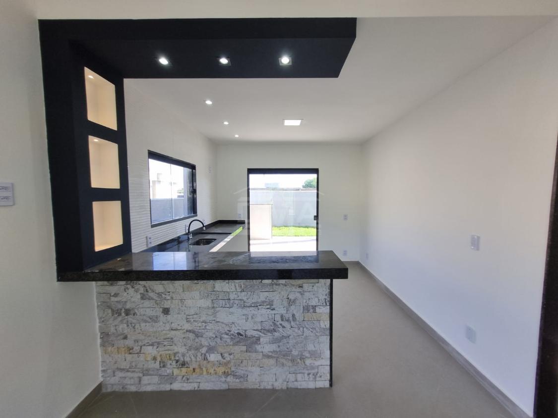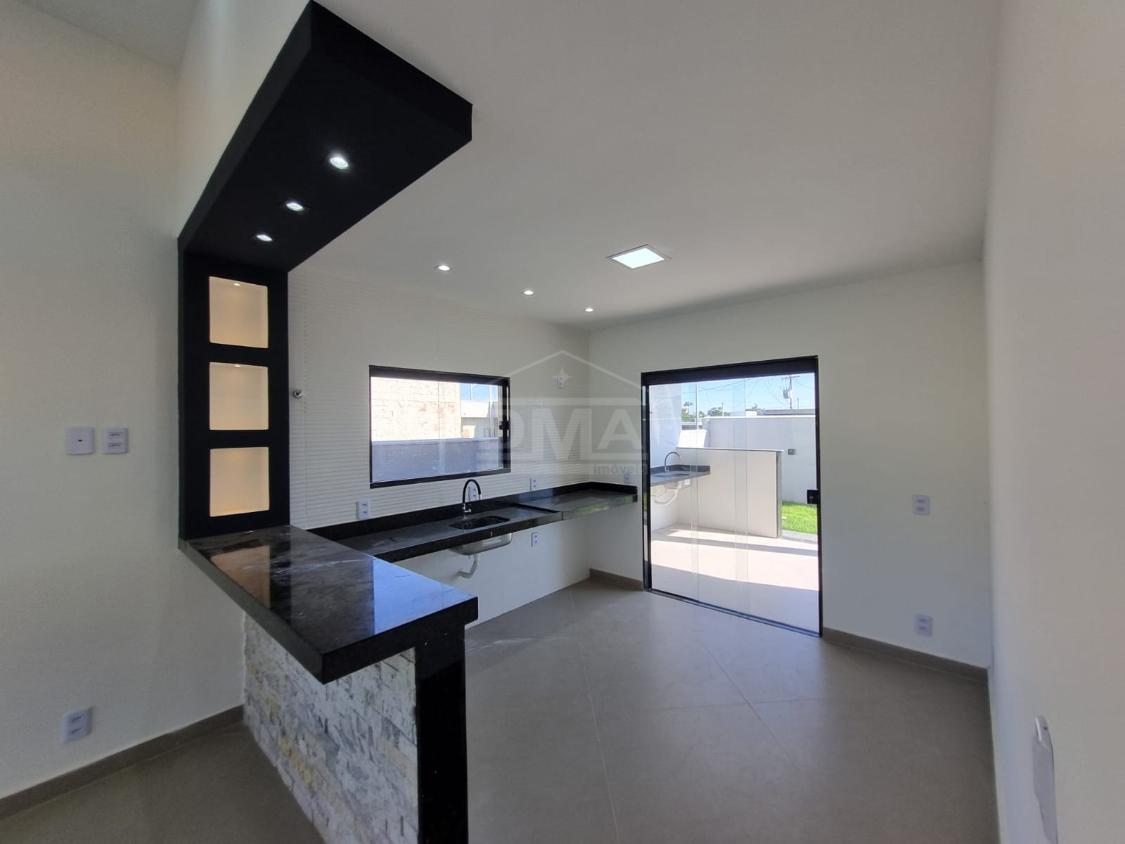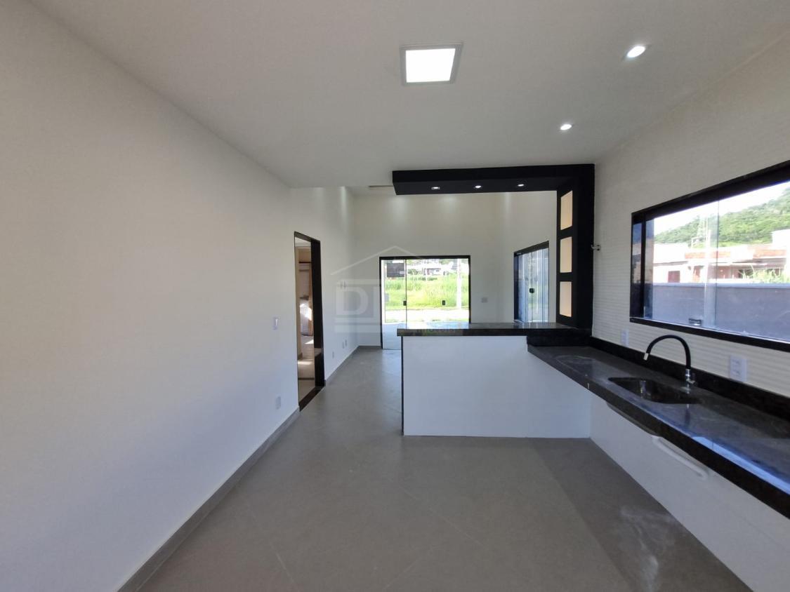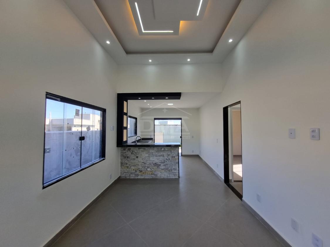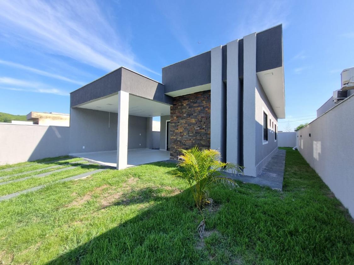 Casa linear, possuindo, cozinha em conceito aberto, dois quartos sendo duas suítes, banherio social, área gourmet com churrasqueira, pia, lavabo, área de serviço, vaga para 2 carros, quintal gramado.