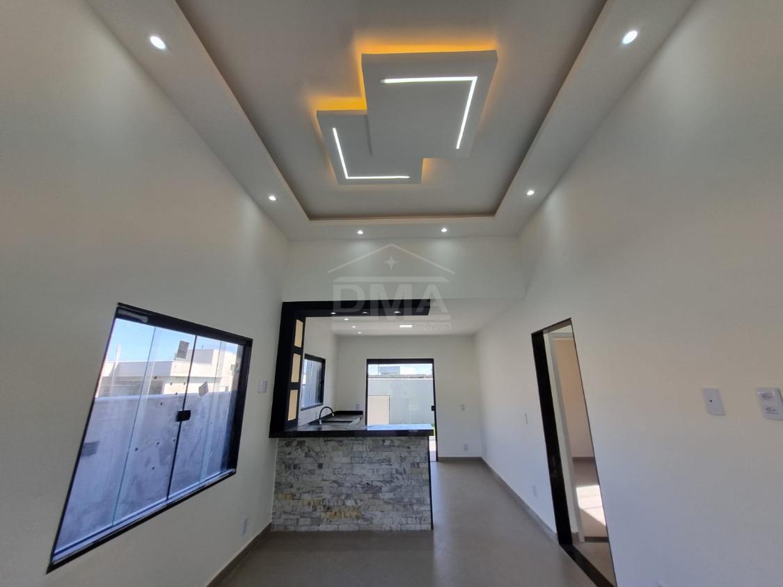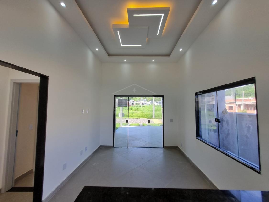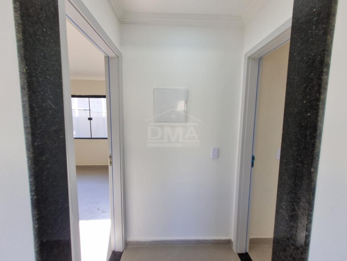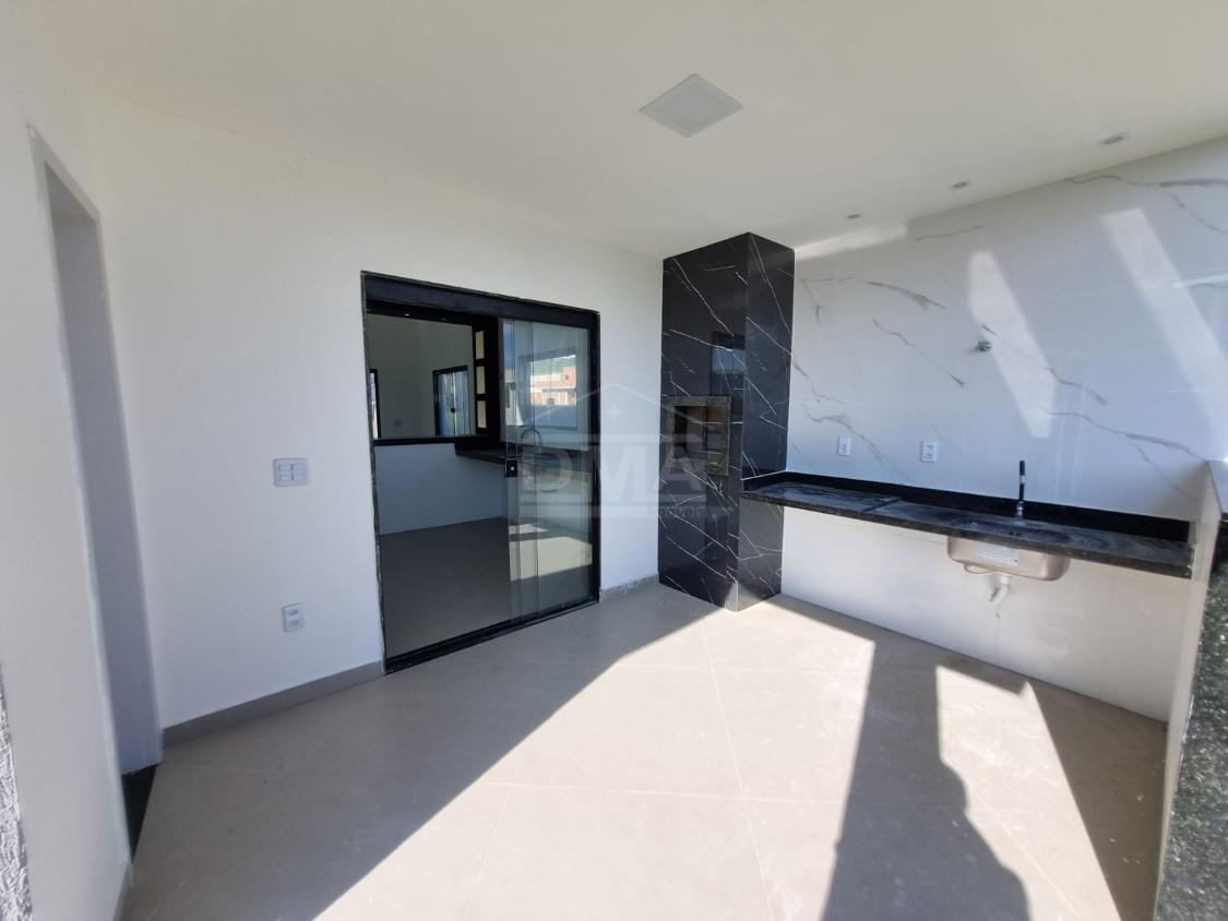 Casa linear, possuindo, cozinha em conceito aberto, dois quartos sendo duas suítes, banherio social, área gourmet com churrasqueira, pia, lavabo, área de serviço, vaga para 2 carros, quintal gramado.